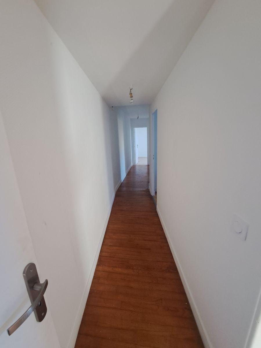 Au 1er étage: Cuisine ouverte sur le séjour, couloir desservant deux chambres, la salle de bains et W.C.