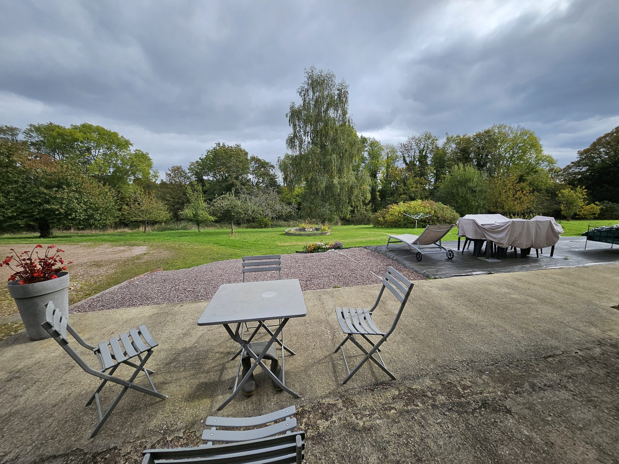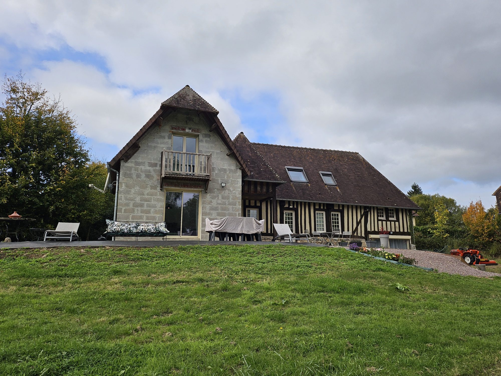 HERMIVAL LES VAUX - Maison en colombage composée : Cuisine aménagée-équipée, un salon ouvert sur séjour avec vue sur le jardin et terrasse, salle de douche, WC séparé, chambre. A l'étage : une suite parentale avec dressing, salle de douche avec WC, deux chambres dont une avec balcon, salle de bains, dressing, WC séparés. En rez de jardin : chambre et cellier. Terrasse en béton. Assainissement récent. Ancien pressoir en colombages à rénover. Sur terrain plat et arboré de 12 359 m². Nous aimons son cahet et ses volumes. Les informations sur les risques auxquels ce bien est exposé sont disponibles sur le site Géorisques : georisques.gouv.fr