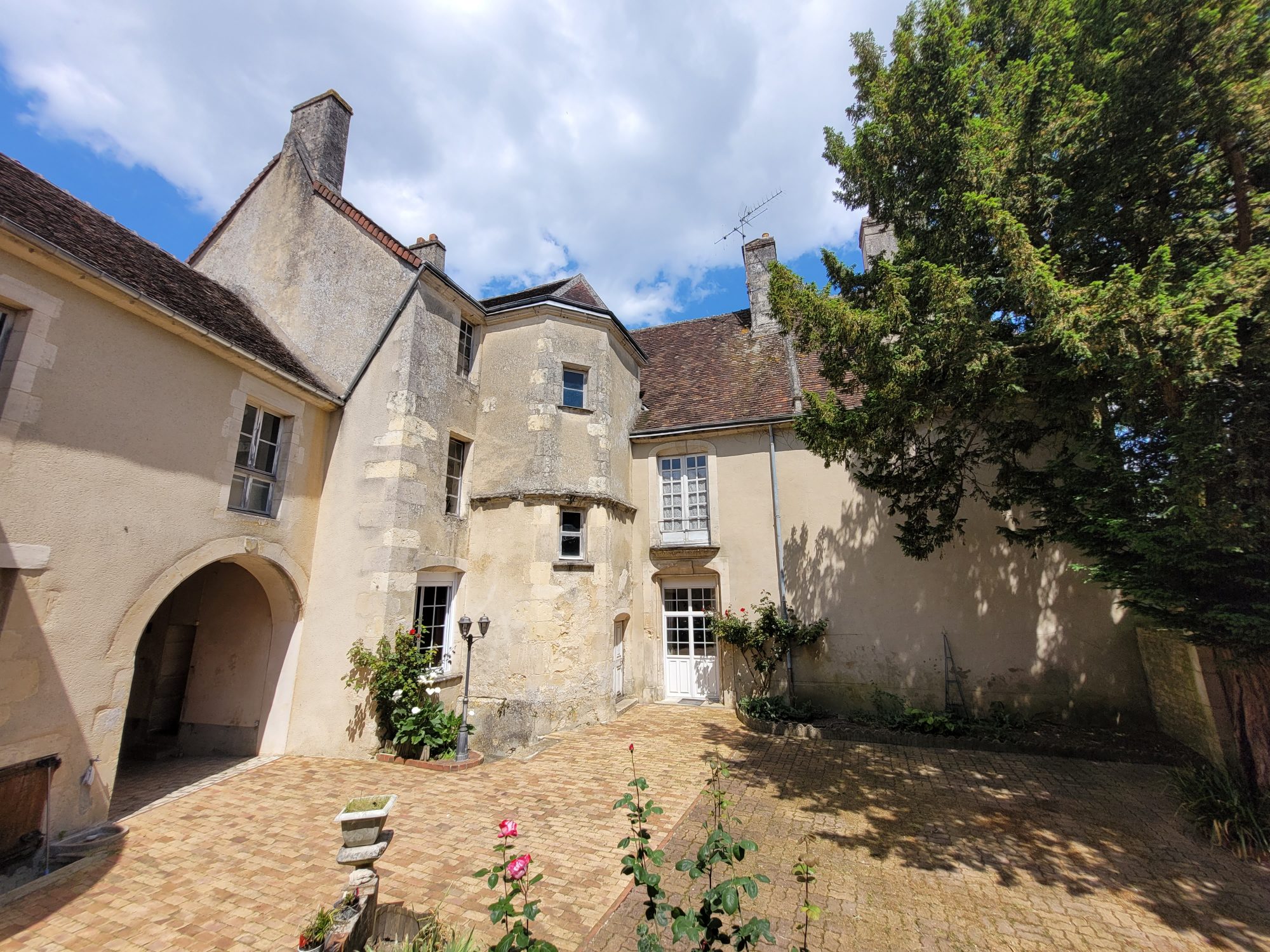 Centre-ville de Mamers, propriété avec sa tour, datant pour ses parties les plus anciennes du 16ème et 17ème siècle, se composant d'une maison d'habitation sur plusieurs niveaux, ancienne partie bureau et dépendance, le tout accessible sous un porche. La maison d'habitation comprend salon, cuisine, salle à manger avec cheminée, salle de bains et WC, grand salon et chambre à la suite. Seconde entrée donnant accès à une chambre (cheminée) et au grand salon. Au 1er étage : palier, WC, salon avec cheminée, cuisine, quatre chambres (trois avec cheminée), seconde cuisine, salle de bains. Au 2ème étage : palier, salon, cuisine, chambre et autre pièce. Plusieurs greniers et caves voûtées. Autre partie composée d'un ancien bureau et d'une pièce à l'étage et grenier. Dépendance composée d'une pièce à feu (cheminée et tomette) et pièce sur l’arrière. Cave voûtée. Bûchers avec accès étage. Remise en pierre sur l'arrière de la maison. Garage. Le tout sur un terrain arboré entièrement clos de murs avec terrasse de plus de 1000m2. Ensemble ayant conservé des éléments d'origine dont de superbes charpentes. Gros potentiel pour investisseurs, projet de chambres d'hôtes ou activité professionnelle. Surface de 404m2 en ajoutant les pièces du second étage et les pièces attenantes à la maison principale. Proximité de Bellême (15kms), Alençon (25kms) et Le Mans (50kms). Accès A28 à 30kms et N12 à 20kms. Les informations sur les risques auxquels ce bien est exposé sont disponibles sur le site Géorisques : georisques.gouv.fr