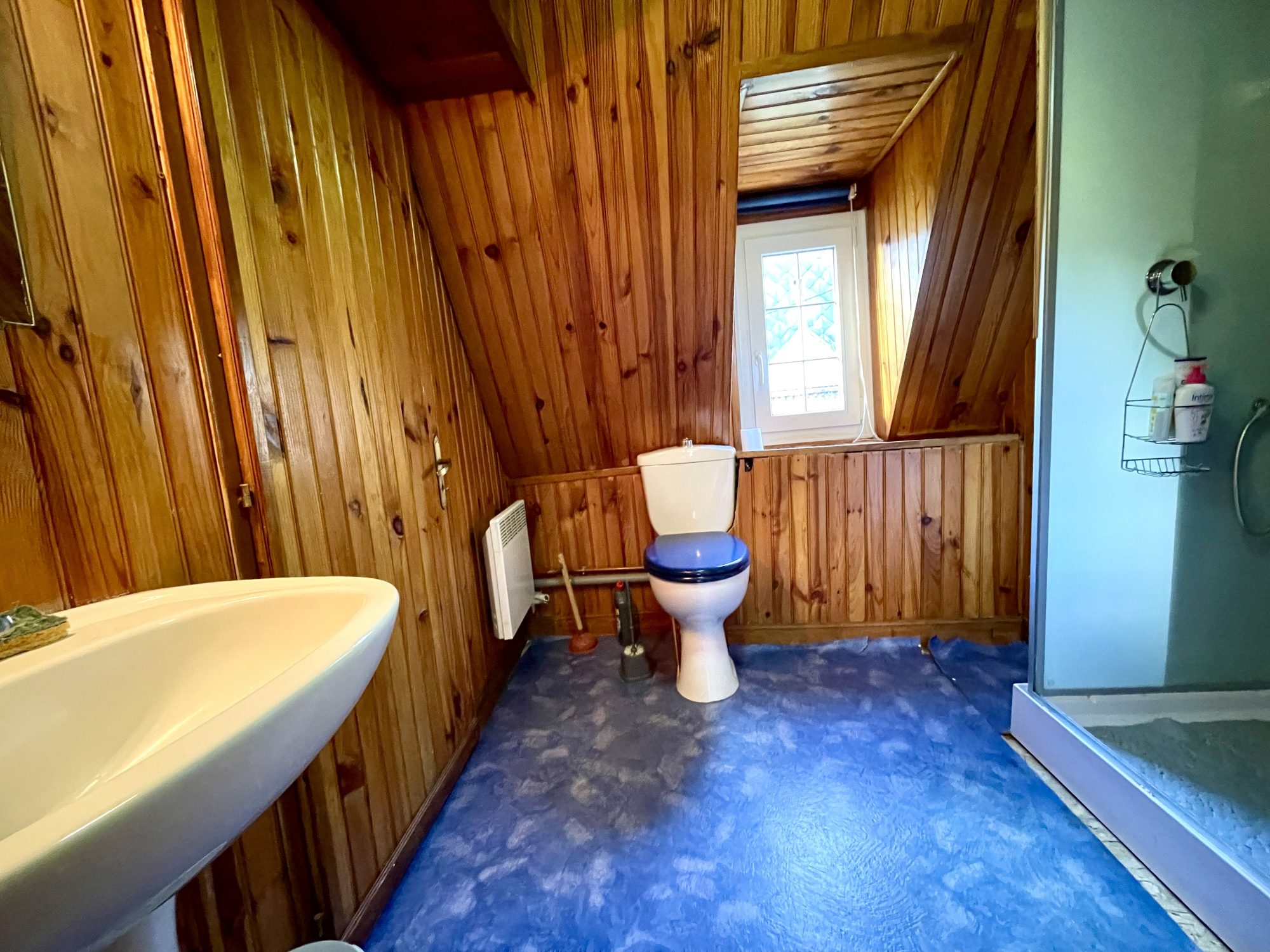 Dans bourg avec commerces . Au calme Maison normande avec potentiel comprenant Au rez-de-chaussée cuisine avec cheminée et poêle, séjour et garage A l'étage avec deux escaliers séparés , d'un côté deux chambres et wc et de l'autre côté deux chambres , salle d'eau et wc. Terrain de 550 m²