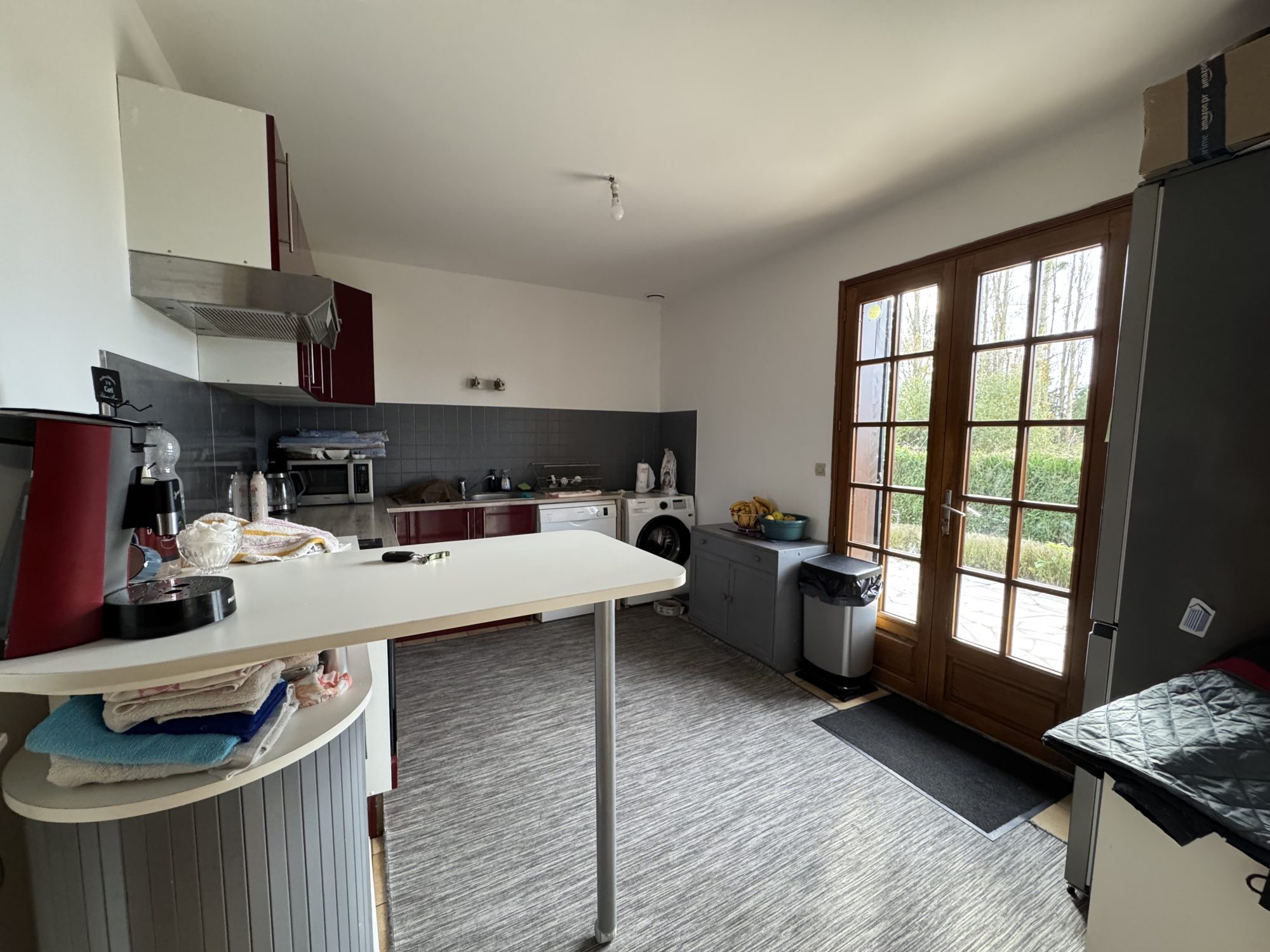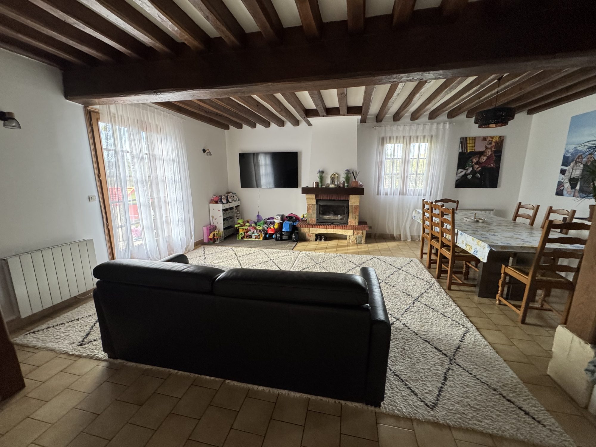 RDC: entrée, séjour-salon avec cheminée et terrasse, cuisine, chambre avec salle d'eau et wc.