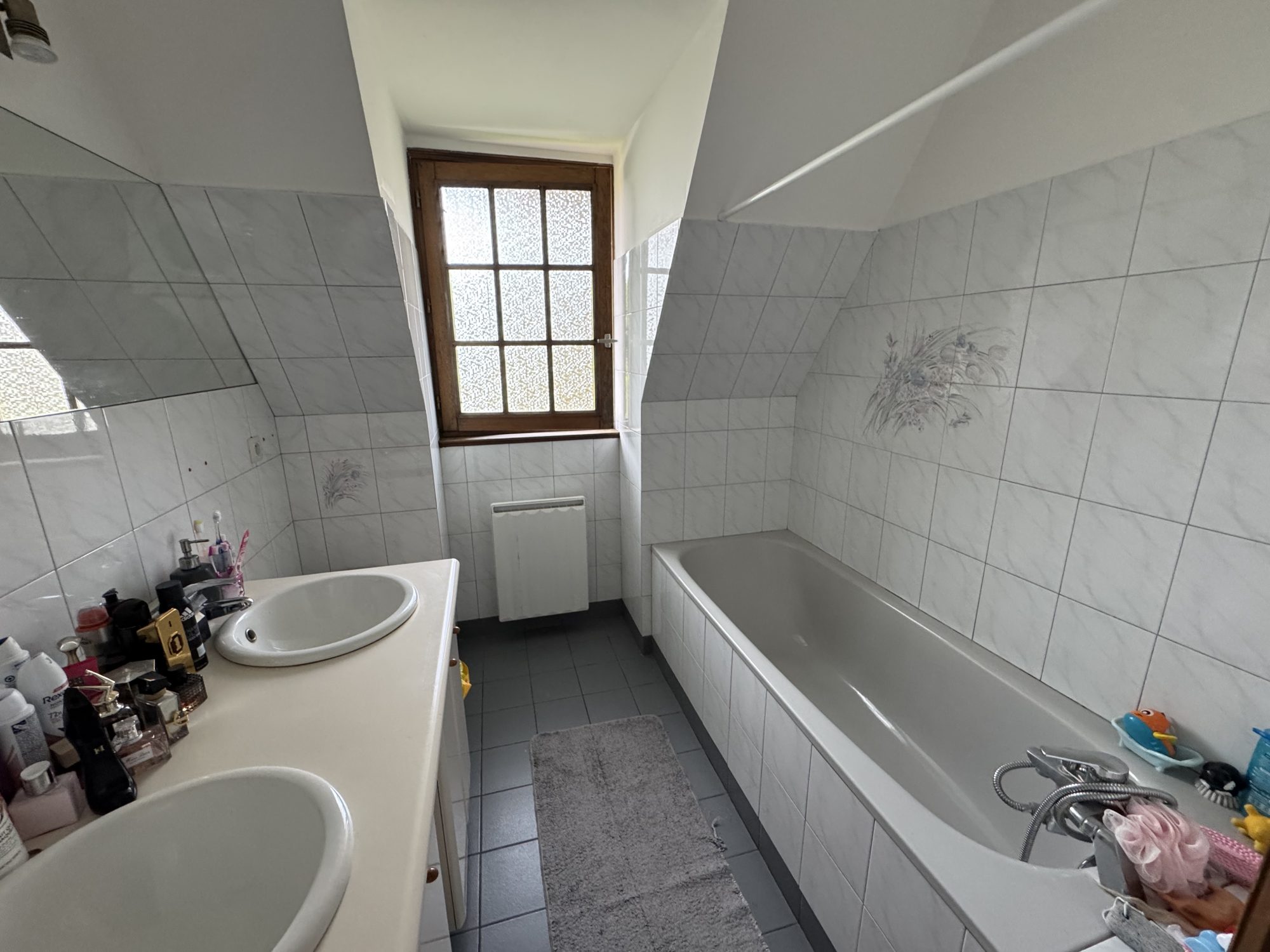A l'étage: palier, 3 chambres (11, 12 et 20 m²), salle de bains et wc.