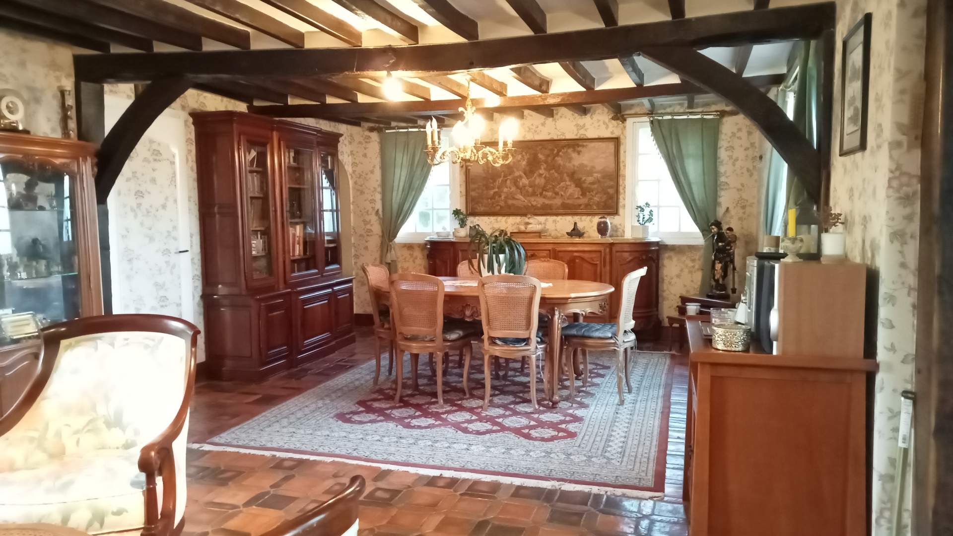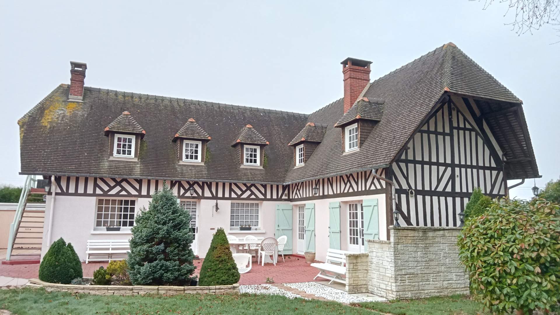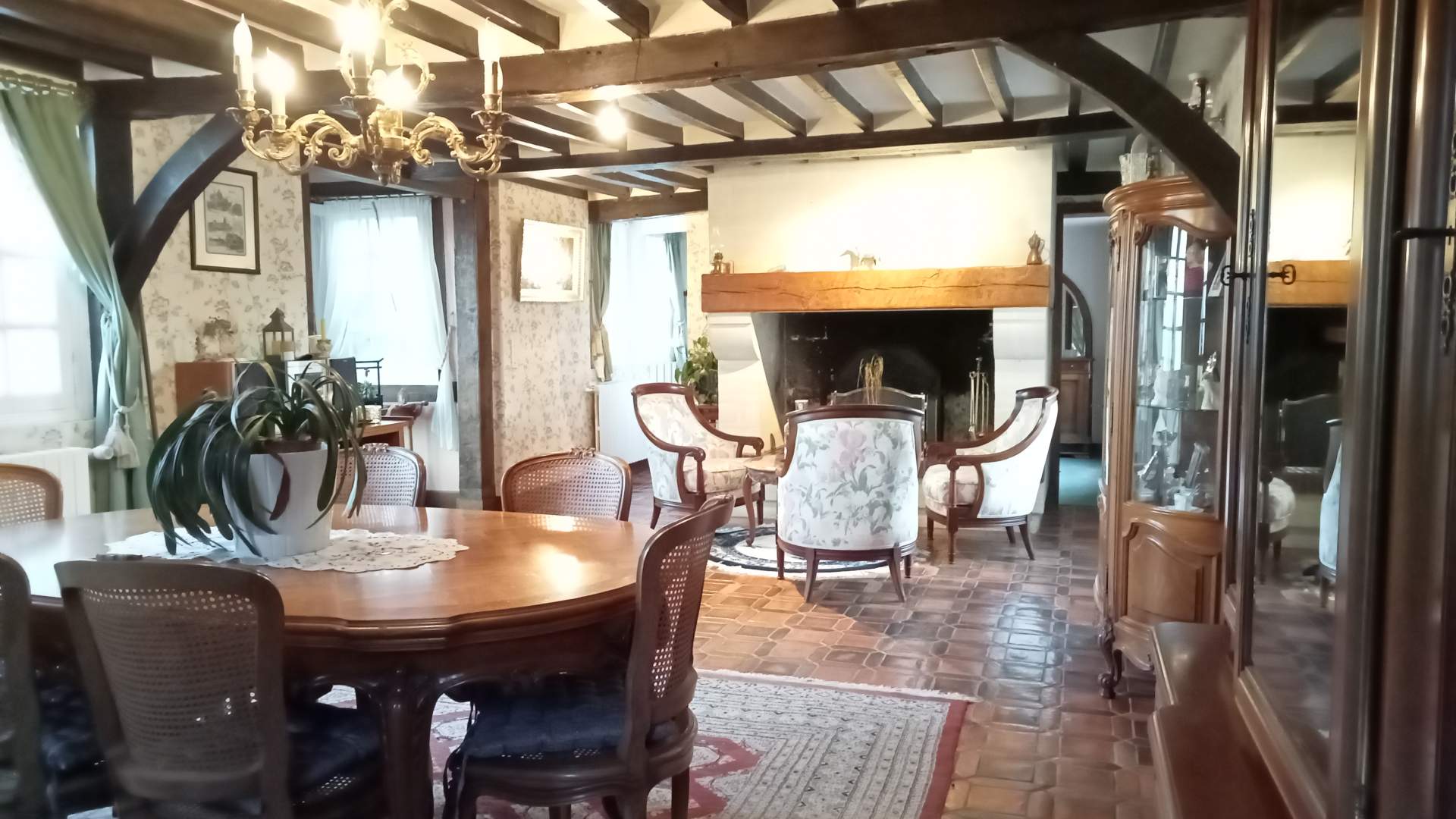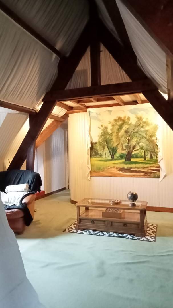 Axe CORMEILLES LISIEUX, charmante maison de caractère composée au rez de chaussée d'une entrée, un séjour salon avec une cheminée, une cuisine aménagée, un salon, une salle de douche, 2 wc, une chambre. A l'étage un salon, une salle de douche avec wc, 4 chambres avec mezzanines chacune.