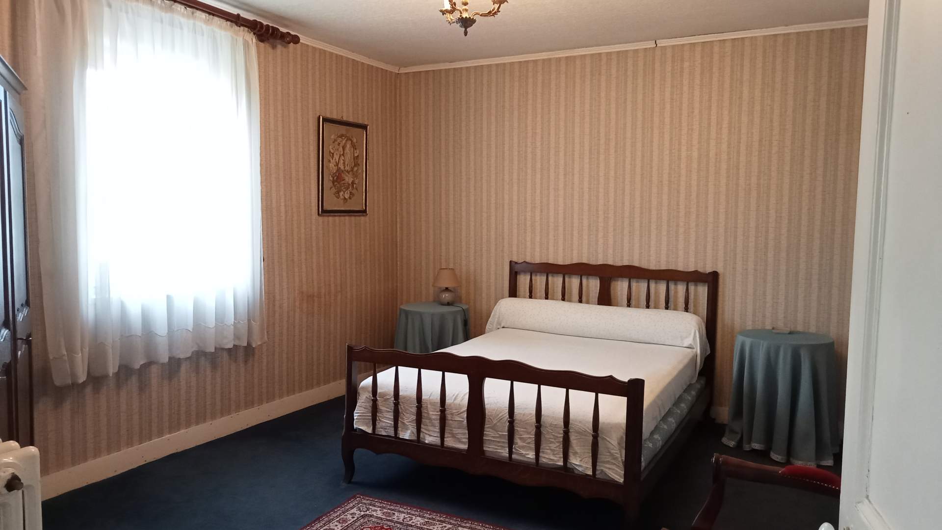 Elle se compose d'une entrée qui dessert une salle, une cuisine aménagée, un séjour salon avec une cheminée ancienne. Au 1er étage un palier qui distribue 3 chambres, une salle de douche avec wc. Au second étage un palier qui dessert 3 chambres, une salle de bain + douche + wc.