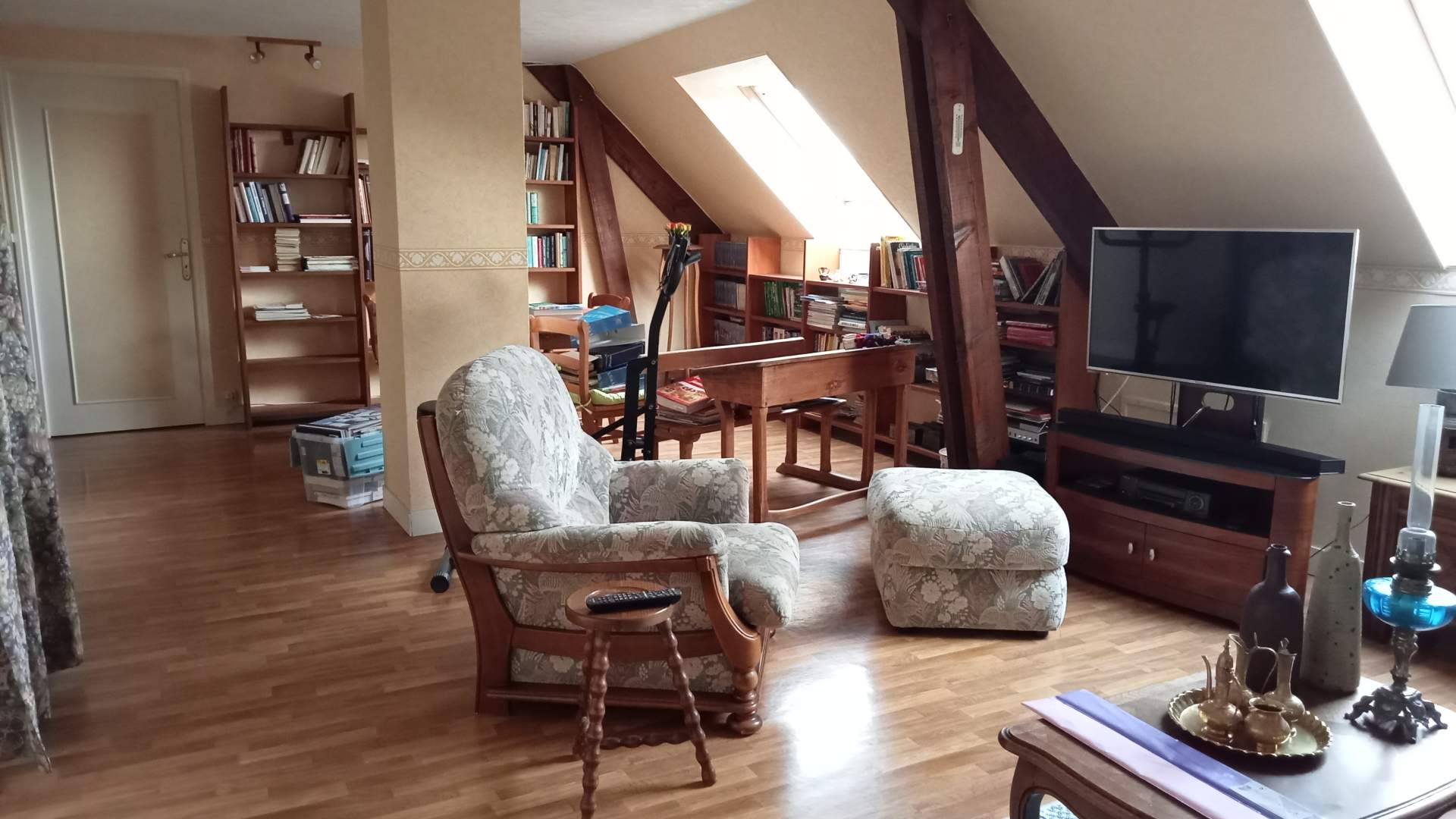 Rez de chaussée : séjour salon, cuisine, salle de douche avec wc.