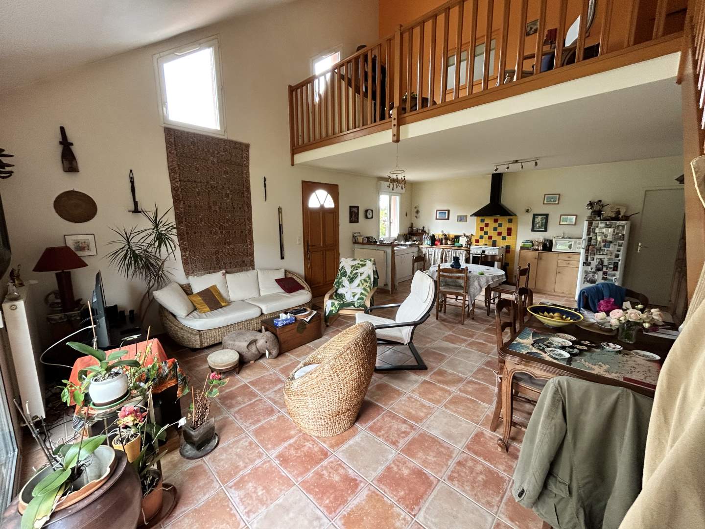 Une belle pièce de vie traversante avec séjour, salon et cuisine ouverte, baignée de lumière naturelle