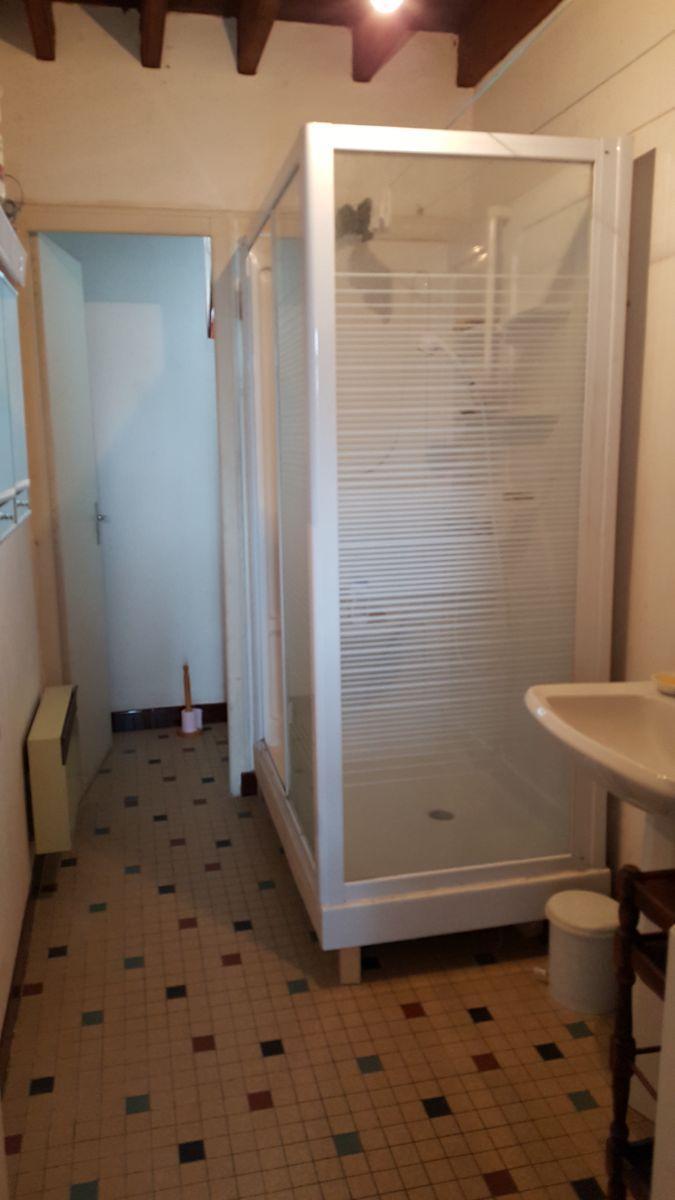 La 2nde partie comprend un séjour-cuisine avec cheminée, salle d'eau et wc au rez-de-chaussée; palier et 2 chambres à l'étage.