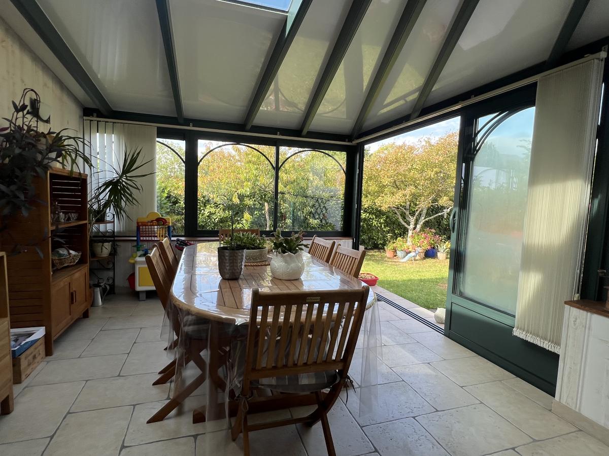 CAEN RIVE GAUCHE proche rue d’Authie, Quartier calme et recherché, charmante maison mitoyenne de plain pied surélevé comprenant entrée, séjour salon 26 m2, belle véranda de 14 m2, cuisine aménagée, 2 chambres, salle de bains, wc. Sous sol complet avec chambre et salle d'eau, bureau, buanderie, garage. Fenêtres PVC avec volets roulants solaire. Combles en partie aménageables. Terrain sans vis à vis de 580 m2 avec dépendance. Très bon état général. DPE : E