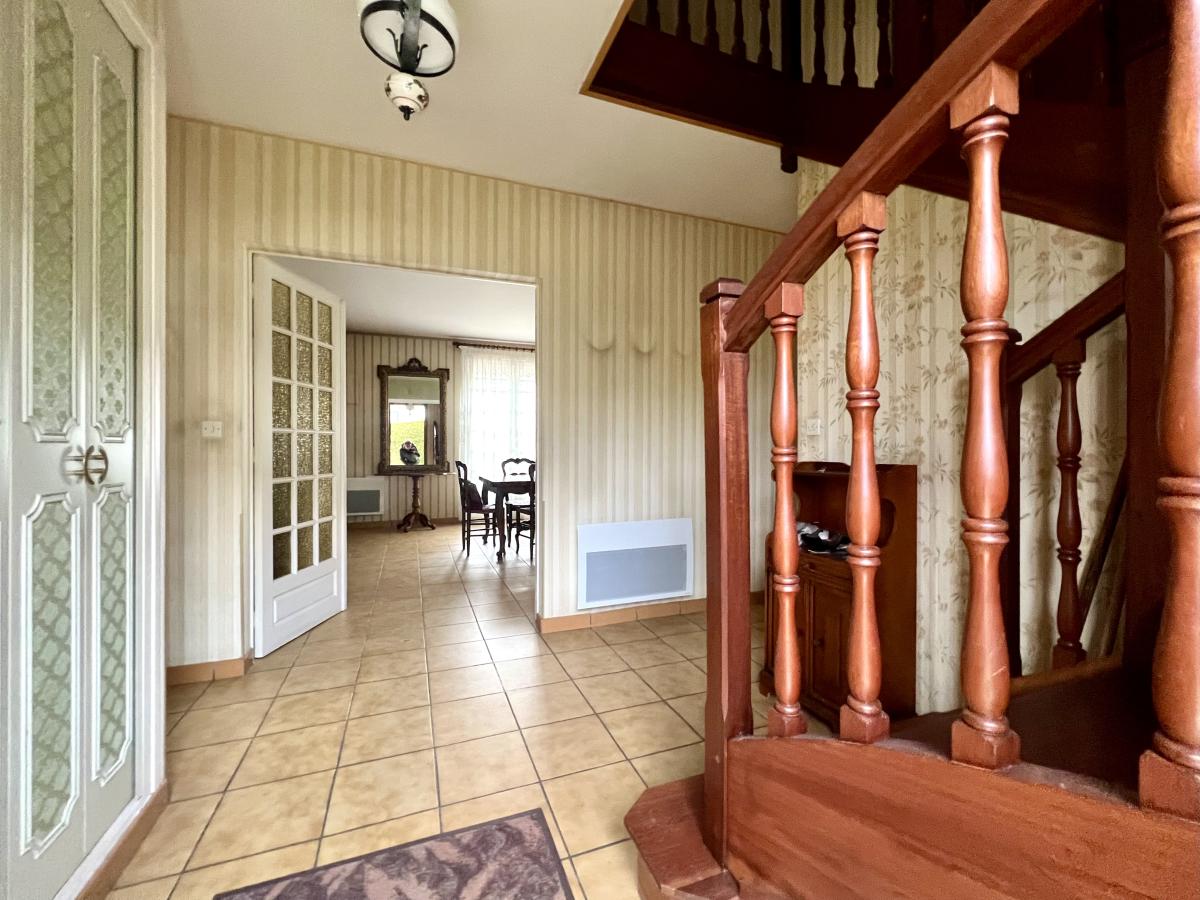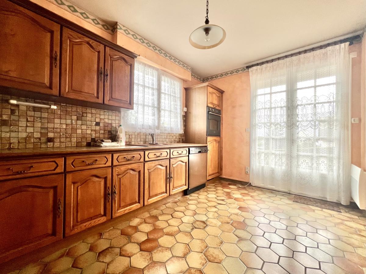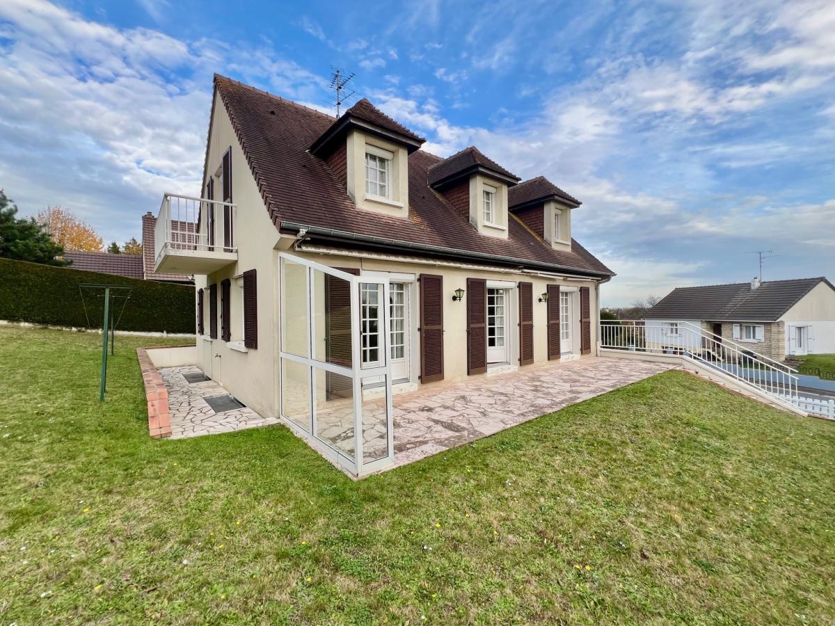 Maison individuelle de 122m2 habitable comprenant entrée, séjour-salon avec cheminée, cuisine, wc, salle de bains, chambre. A l’étage, palier, trois chambres, wc, salle de bains. Sous-sol complet avec garage. Terrain de 600m2.