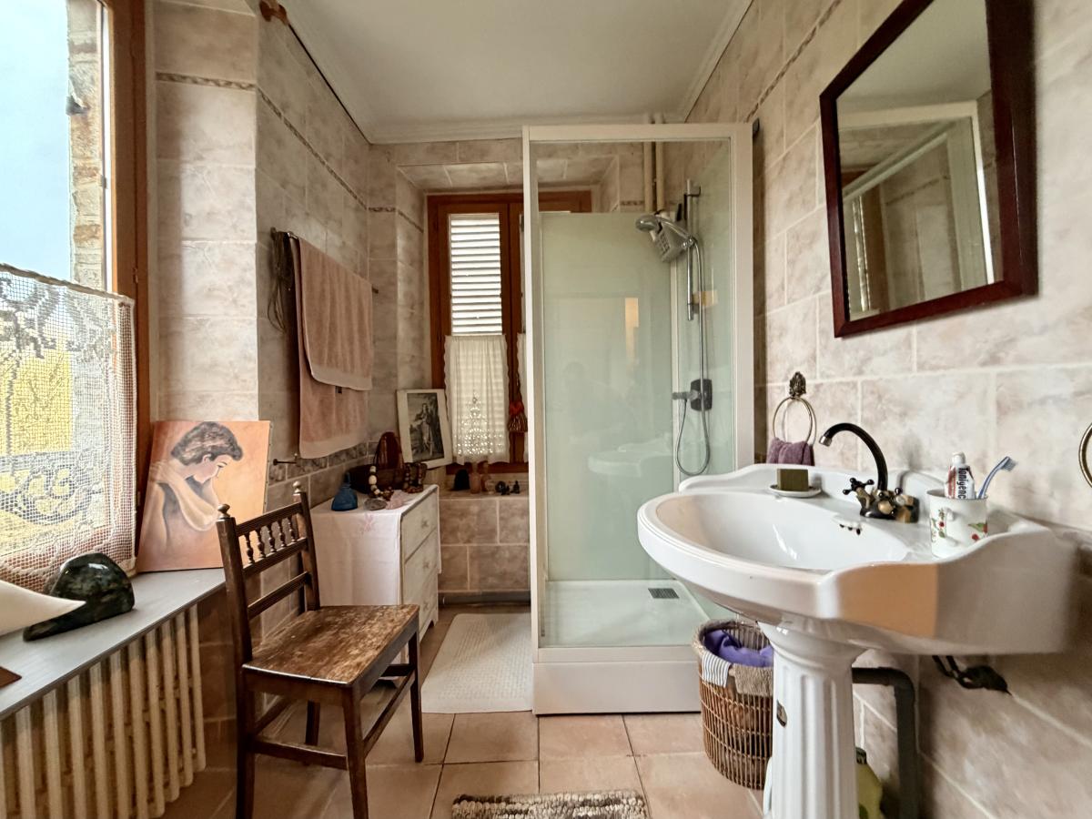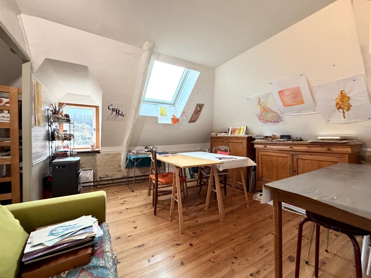 Maison ancienne en pierre pleine de charme comprenant entrée, séjour-salon avec poêle à bois, cuisine. Au 1er étage, palier, salle d'eau, wc, deux chambres. Au deuxième étage, trois pièces à aménager permettant de créer deux chambres et une salle d'eau.