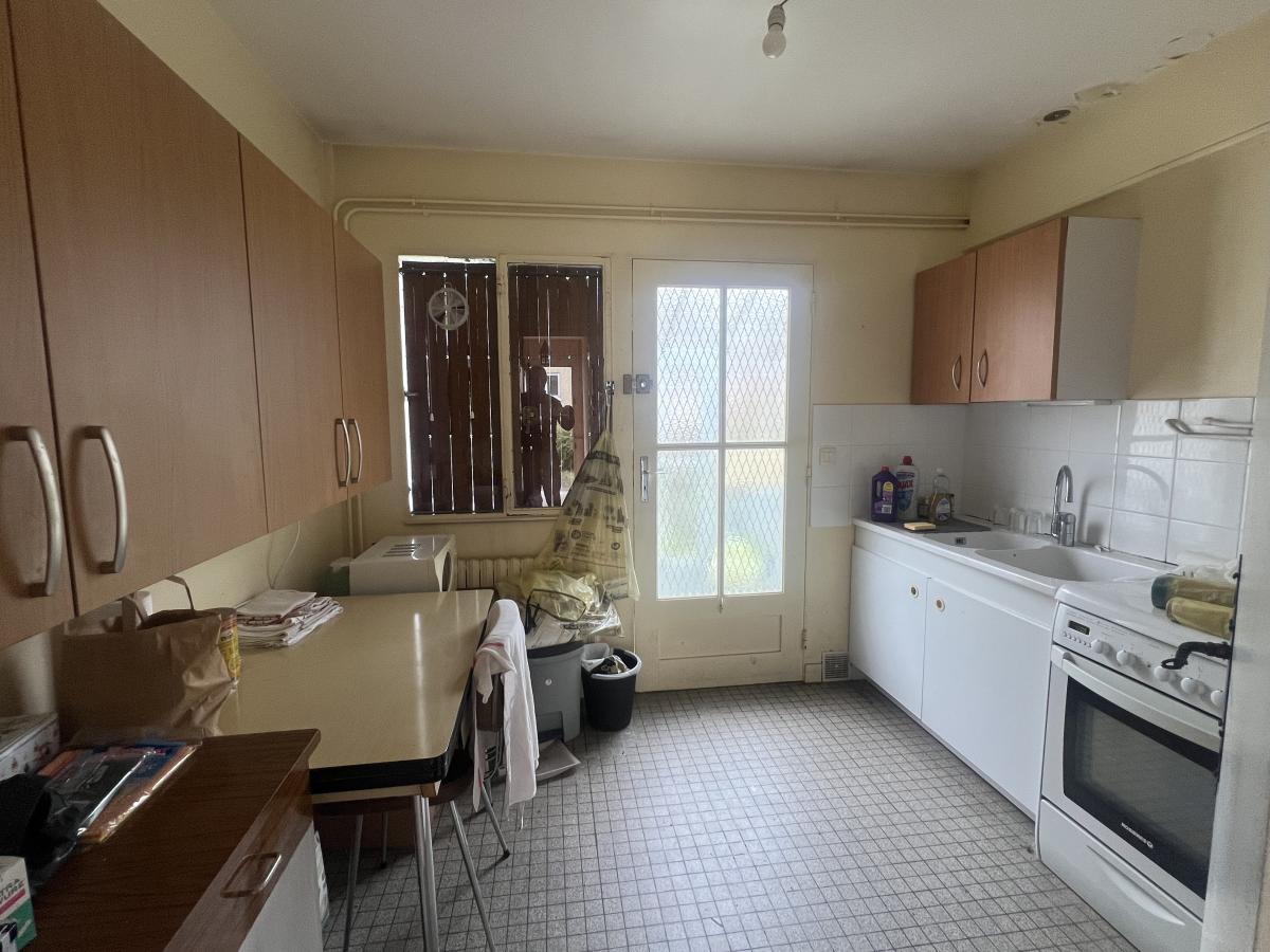 CAEN VENOIX - Maison de plain pied à rénover entièrement comprenant entrée, séjour salon, cuisine, 3 chambres, salle d'eau, wc. Garage. Chauffage gaz de ville. Terrain 490 m2. DPE : F