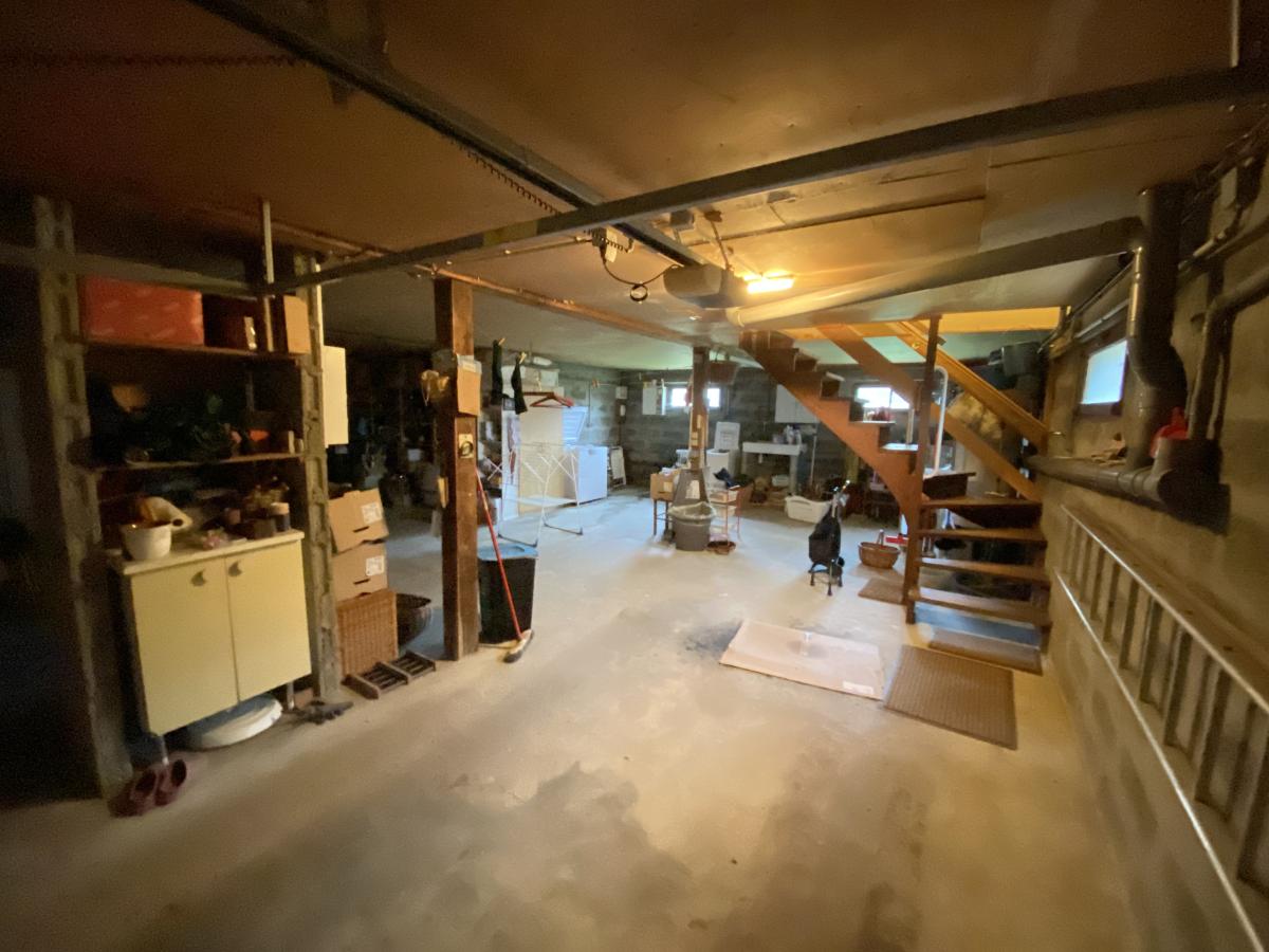 Un sous-sol pratique pour stationnement voiture et rangements.