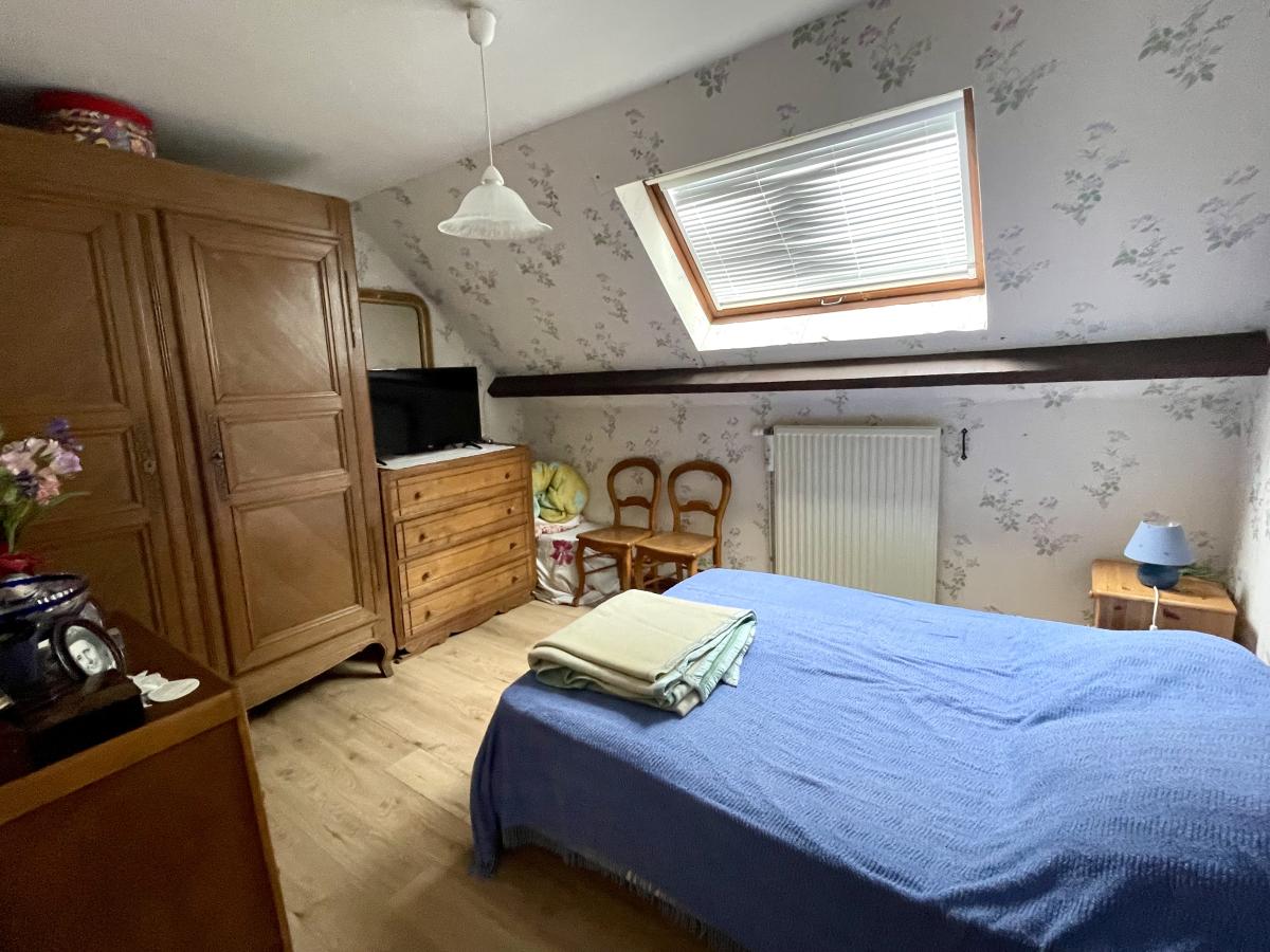À l’étage, un palier dessert 3 chambres, une salle de bains et un wc indépendant.