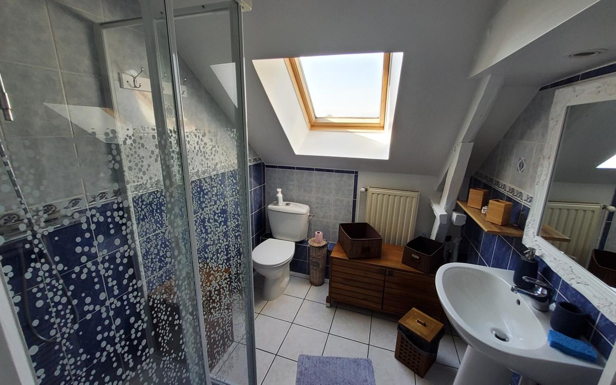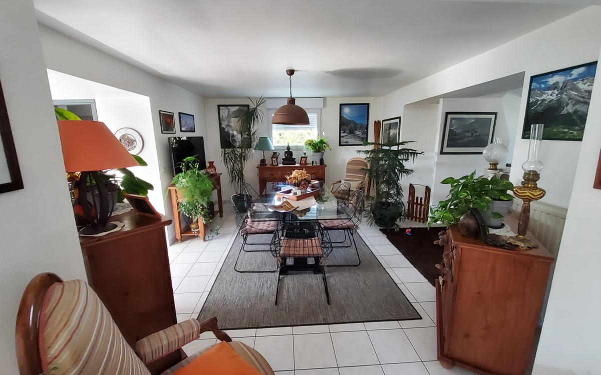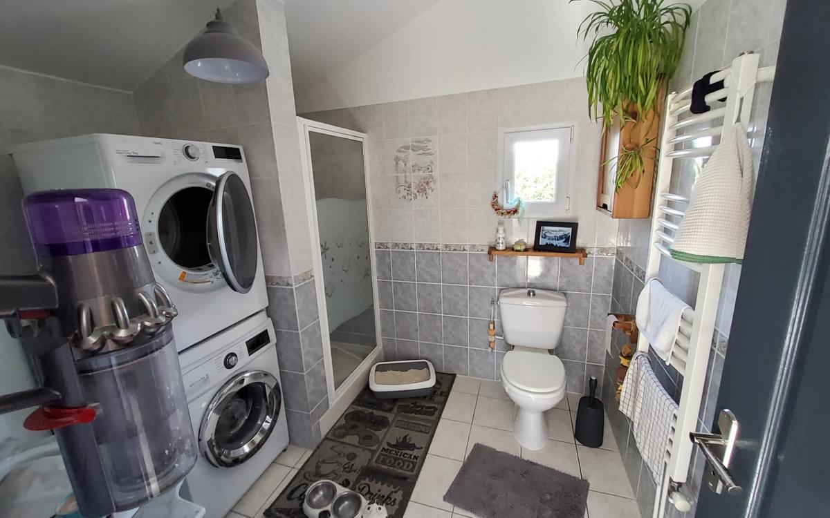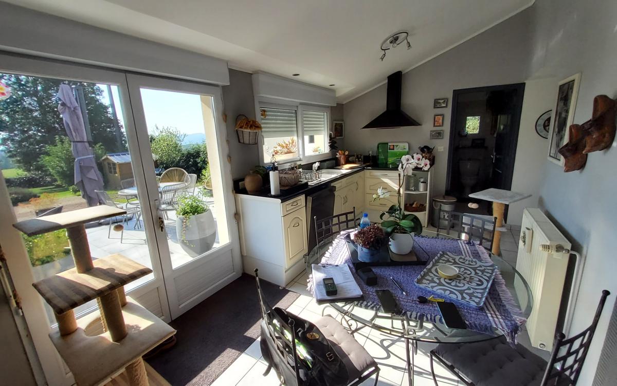 - au rez-de-chaussée : cuisine aménagée et équipée avec poêle à granulés, d'une salle à manger, d'un salon chaleureux avec cheminée insert, d'une suite parentale (salle d'eau + WC) et d'une salle d'eau supplémentaire avec WC.