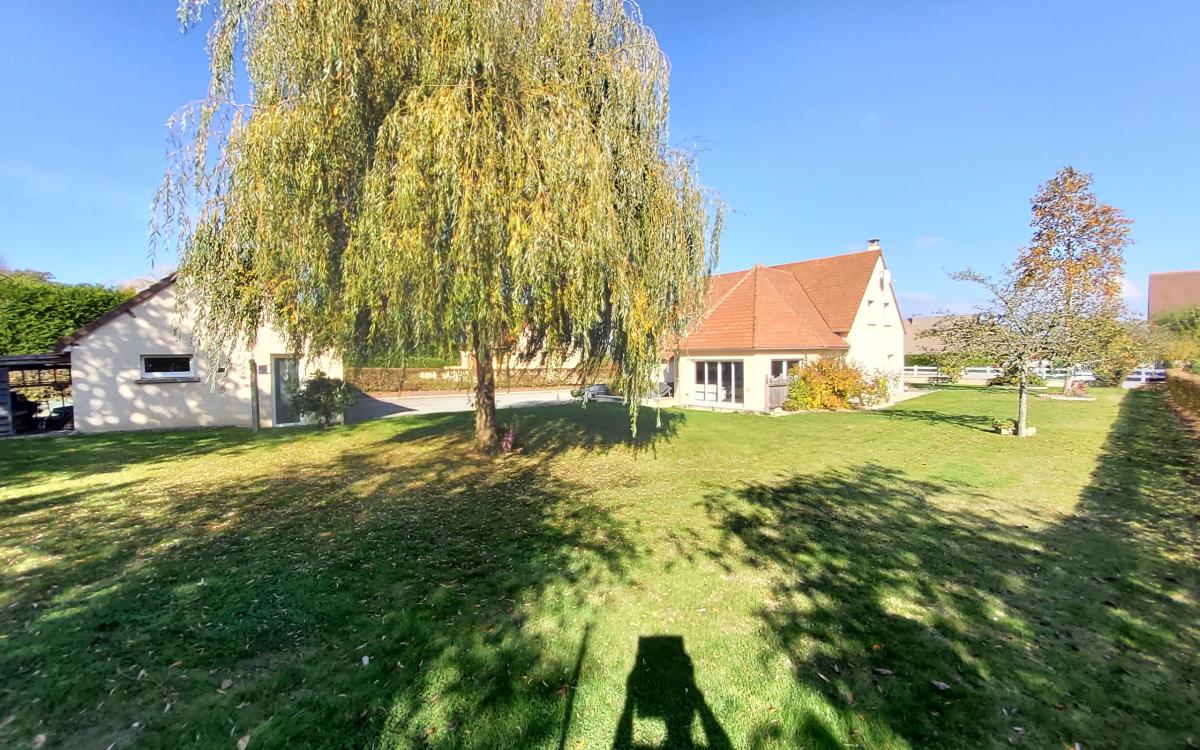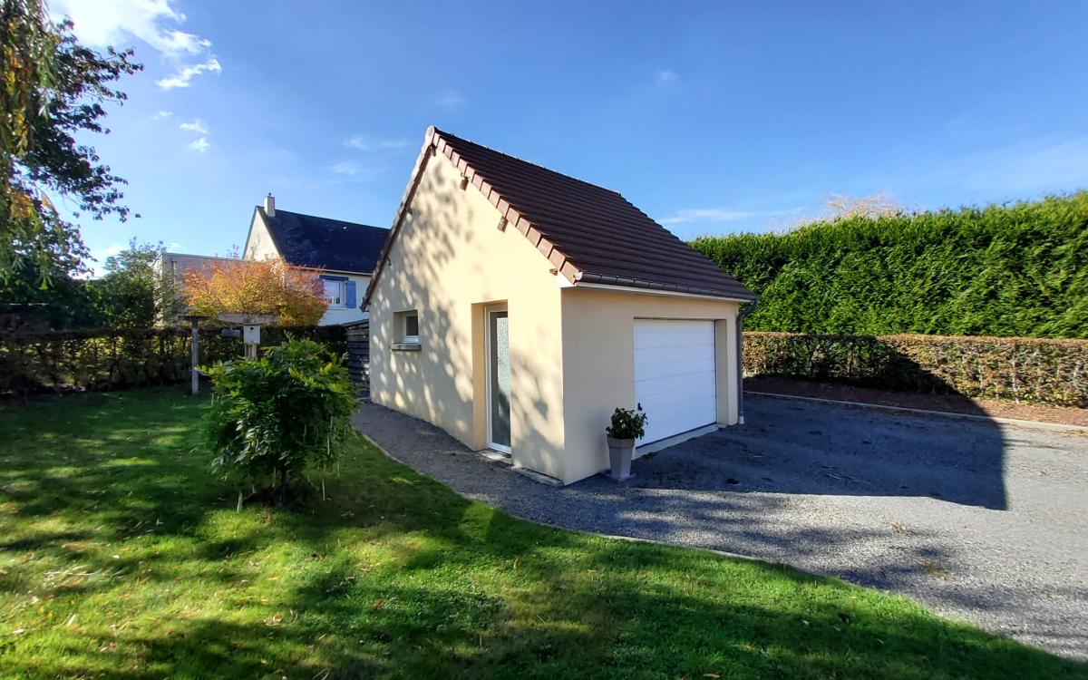 Terrain clos et arboré de 1406 m², garage supplémentaire indépendant.