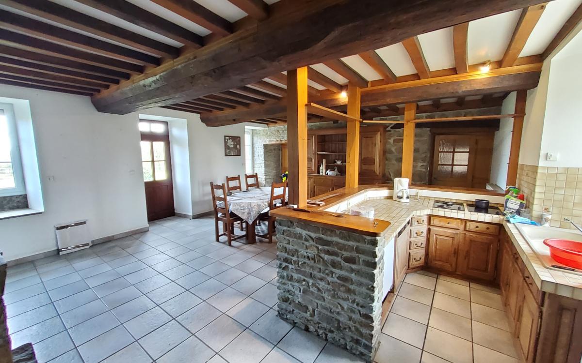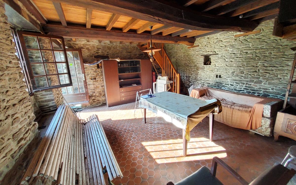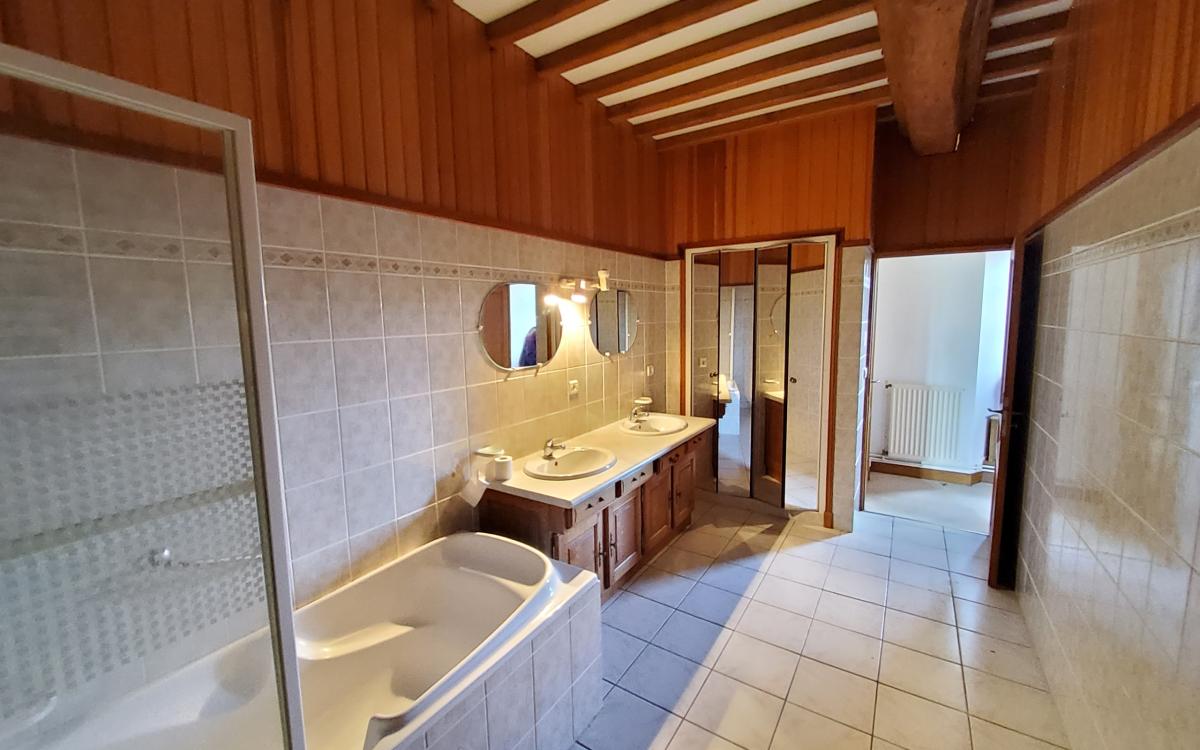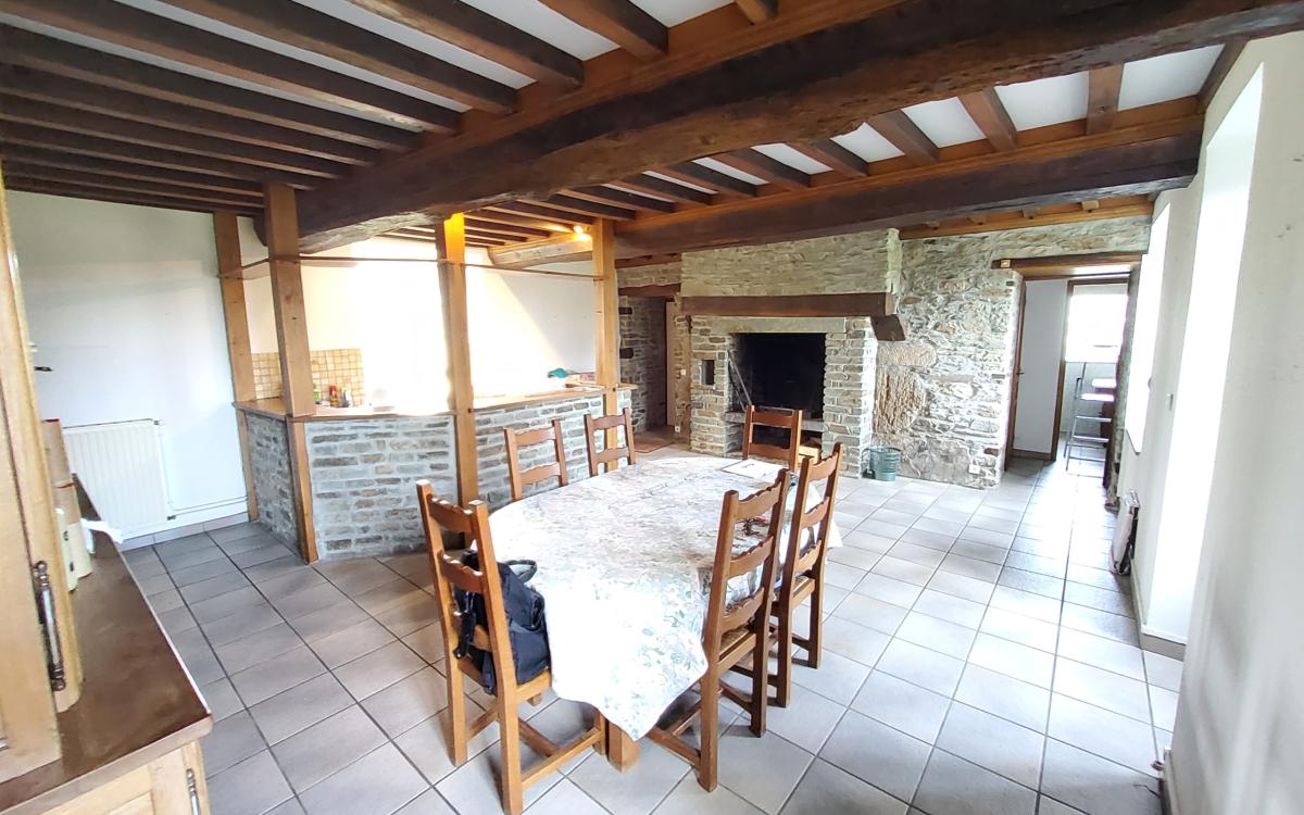 - au rez-de-chaussée : entrée, pièce à vivre comprenant salon avec cheminée et cuisine ouverte, salon avec cheminée insert, salle d'eau, wc, arrière cuisine, pièce au dessus.