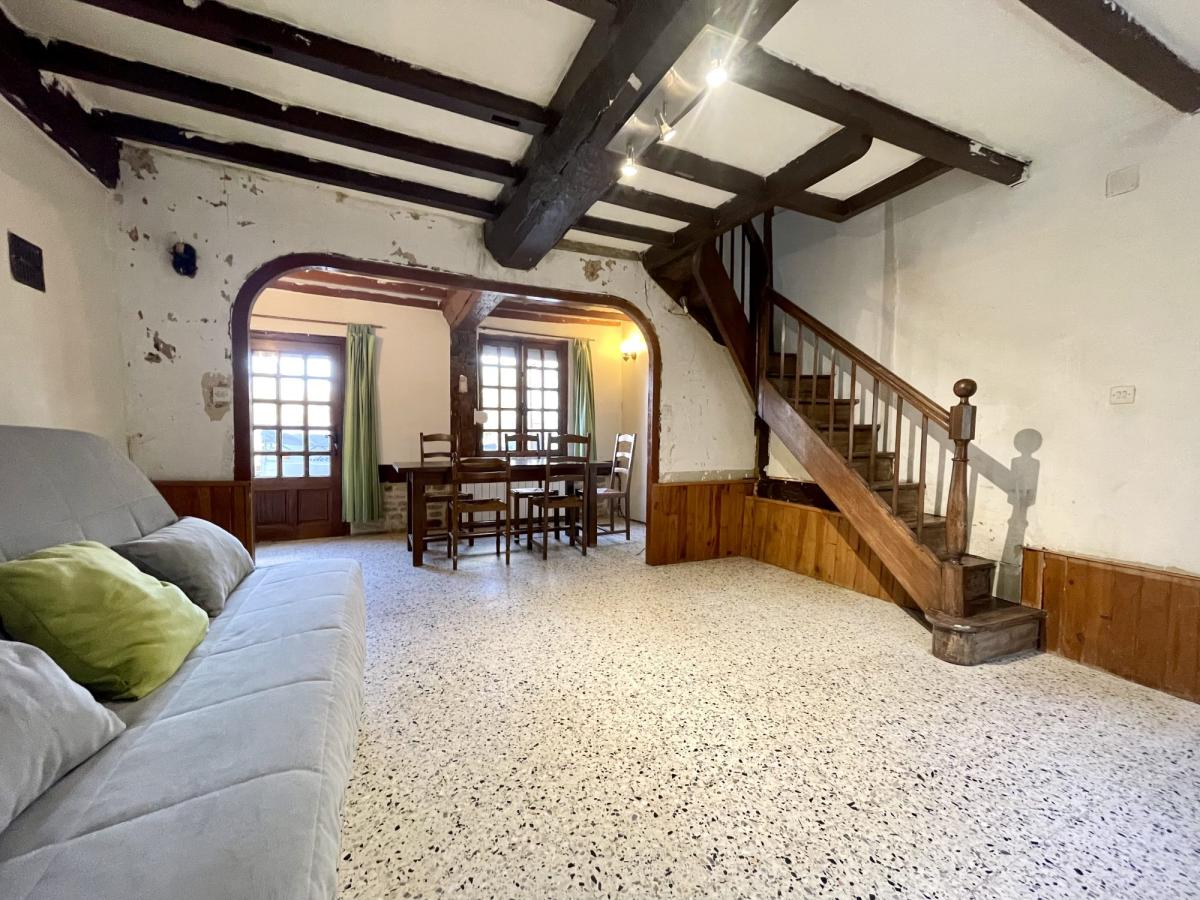 Dans bourg avec commerces . Au calme Maison normande avec potentiel comprenant Au rez-de-chaussée  cuisine avec cheminée et poêle, séjour et garage A l'étage avec deux escaliers séparés , d'un côté deux chambres et wc et de l'autre côté deux chambres , salle d'eau et wc. Terrain de 550 m²
