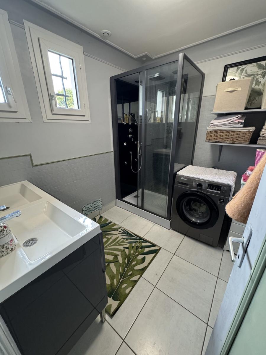 RDC surélevé: entrée, séjour-salon de 35m², cuisine aménagée, chambre, salle d'eau et wc