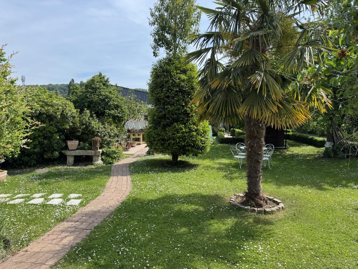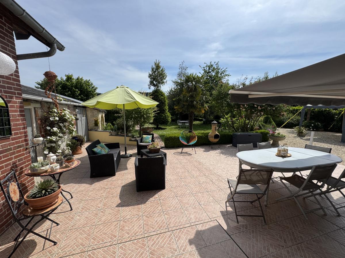 Au rez-de-chaussée: entrée, séjour-salon, cuisine aménagée, wc, chaufferie avec chaudière à granulés. Belle terrasse de 50m².