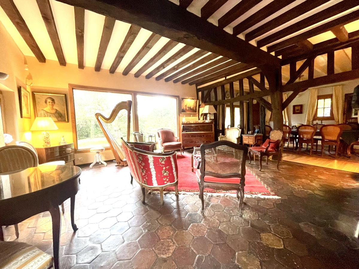 Au rez-de-chaussée : une entrée desservant un très beau séjour avec cheminée de 53 m² , un salon bibliothèque de 36 m² , cuisine aménagée et équipée , couloir desservant une salle de bains , wc , une chambre avec dressing , wc séparé , chaufferie , un bureau et une autre chambre.