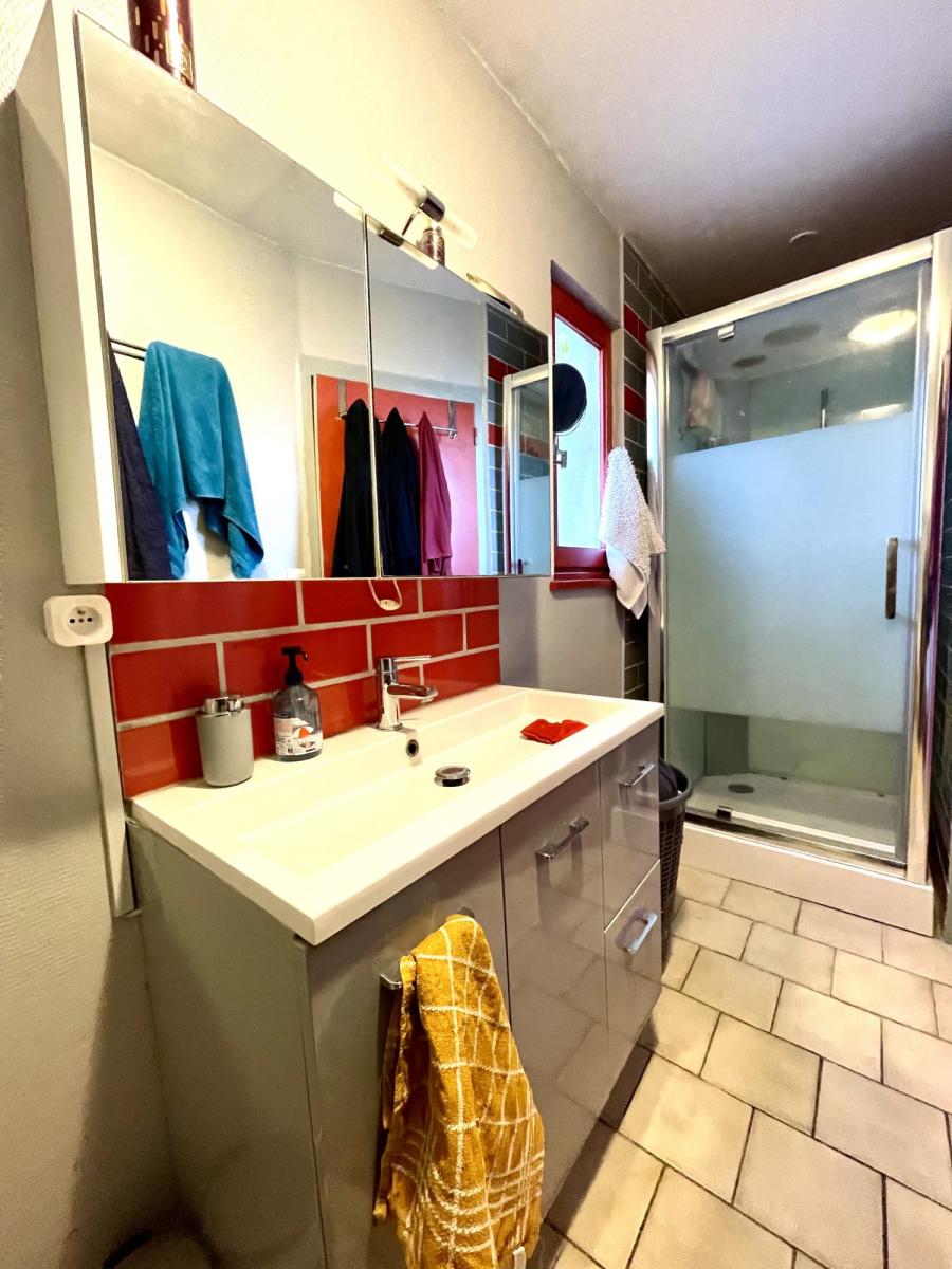 MEZIDON VALLEE D'AUGE -MONTEILLE Au calme Maison en briques et silex , en bon état général, comprenant : -Au rez-de-chaussée entrée desservant cuisine aménagée et équipée , séjour avec cheminée, salle d'eau avec wc . -A l'étage couloir desservant trois chambres . Un garage vient compléter cette maison . Le tout sur un terrain clos de 700 m²