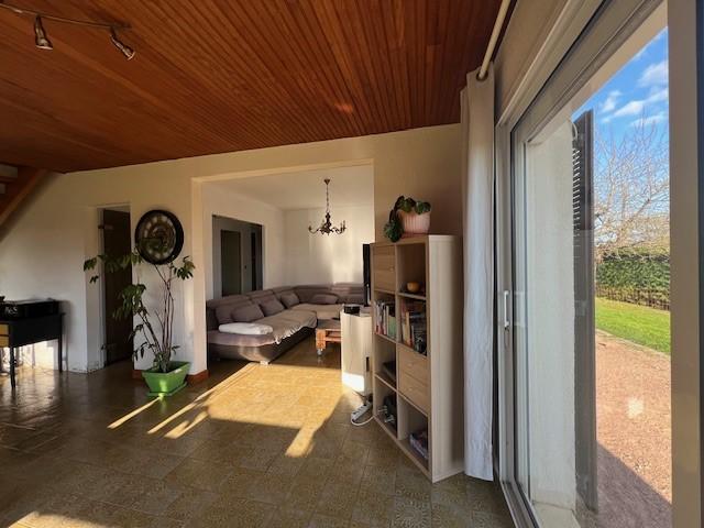 - au rez de chaussée : entrée avec penderie, salle-salon avec cheminée insert, cuisine, arrière-cuisine/lingerie, une salle de douche, wc, une chambre, une terrasse exposée Sud