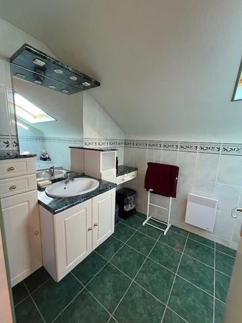 A l'étage : palier desservant 4 chambres, une salle de bains, wc, lingerie avec placard,