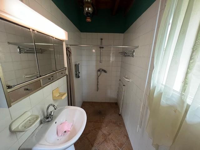 - Au rez-de-chaussée : cuisine, salle d'eau avec wc, séjour-salon avec cheminée insert, une chambre, un cellier attenant à la maison suivi d'un agrandissement avec une grande pièce de vie, salle d'eau avec douche à l'italienne et lavabo.