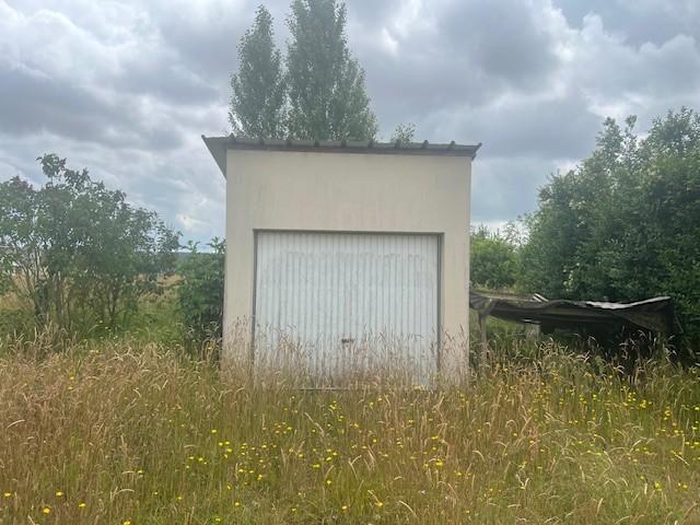 Garage construit en briques et couvert en bac acier.