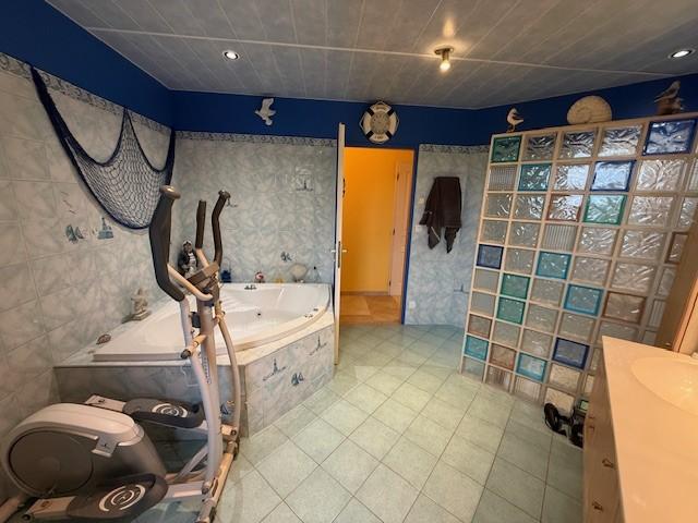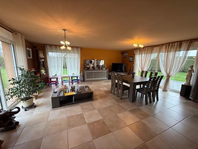 Entrée, cuisine aménagée et équipée ouverte sur salle-salon avec cheminée centrale double foyer, chauffage au sol pour partie et radiateurs électriques pour autre partie, wc indépendant, salle de bains avec baignoire et douche, buanderie dressing, 3 chambres.