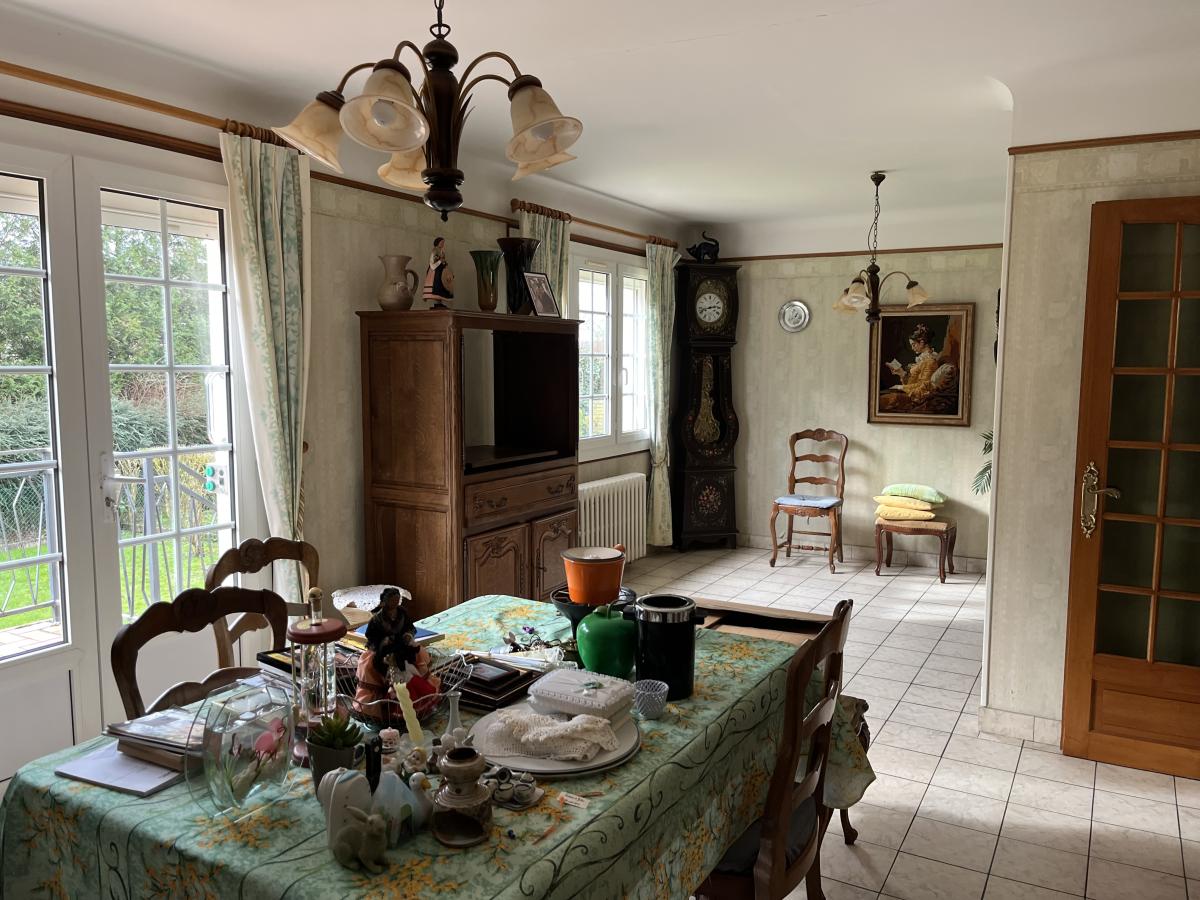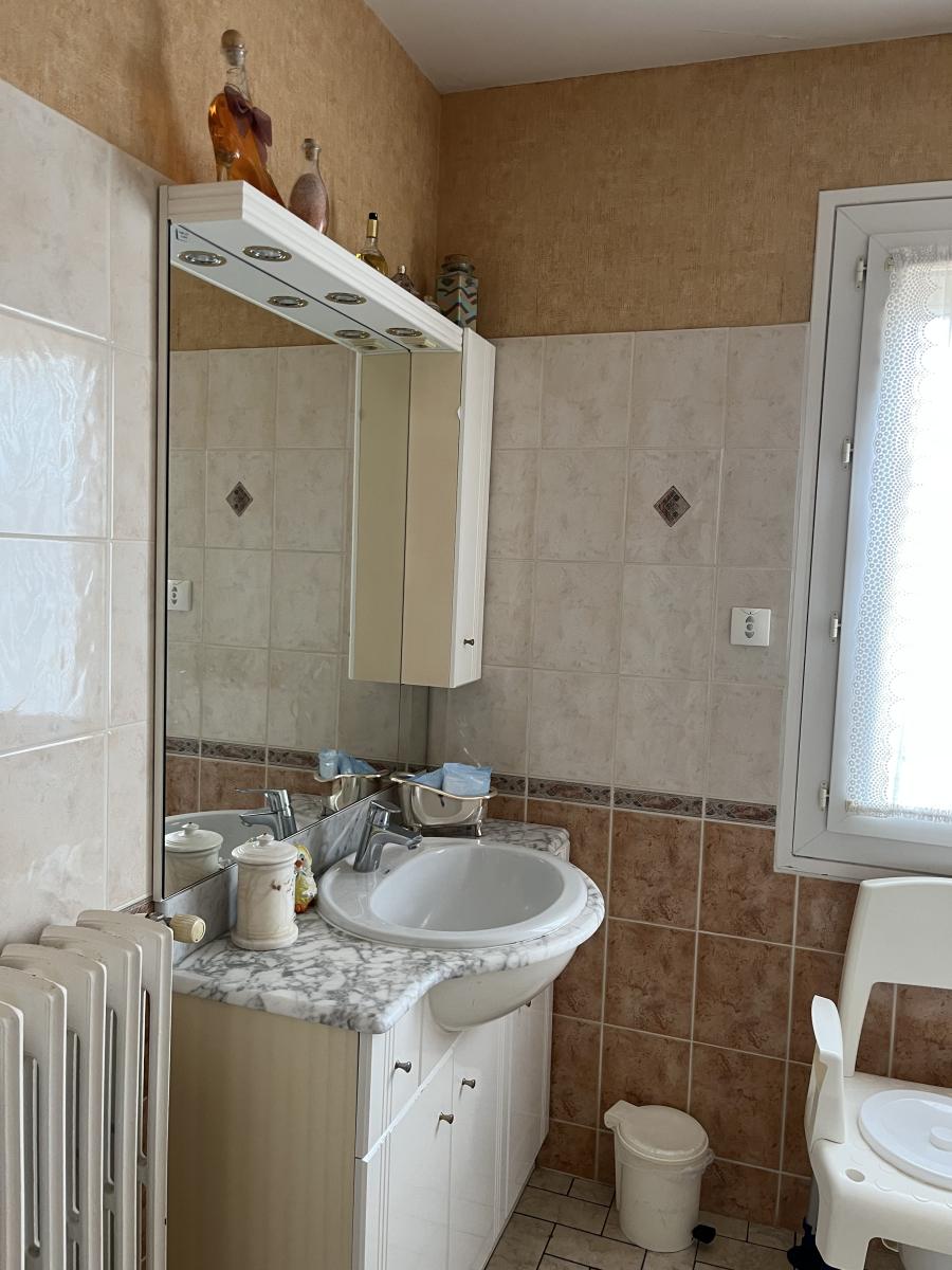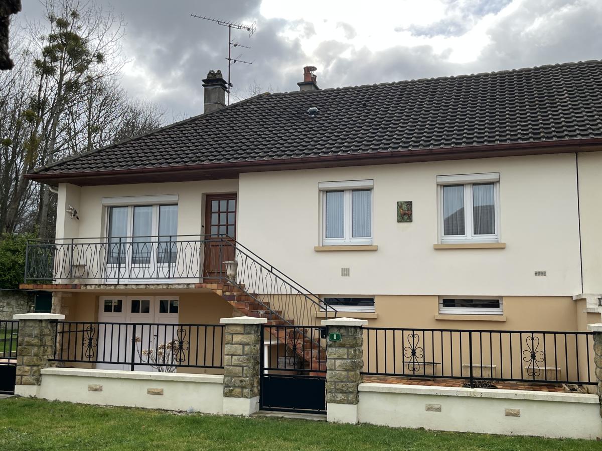 Sur sous-sol complet, maison de construction traditionnelle, jumelée sur un côté, comprenant au rez-de-chaussée surélevé : entrée avec rangements, cuisine, séjour-salon, deux chambres, salle d'eau, wc. Jardin clos.