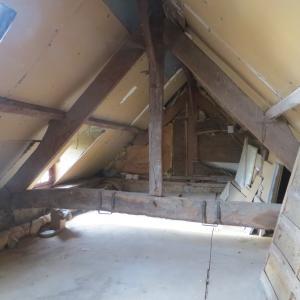 UNE MAISON de type longère sous ardoise fibro, composée au rez-de-chaussée d'une cuisine, séjour, chambre, buanderie, WC et douche, et d'une chambre et grenier au premier étage.