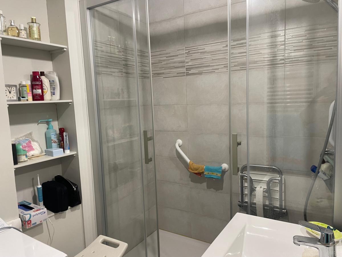 - une entrée avec placard et dégagement, une cuisine, un séjour avec grand balcon carrelé, deux chambres, une salle d'eau récente, WC avec lave-mains, débarras.