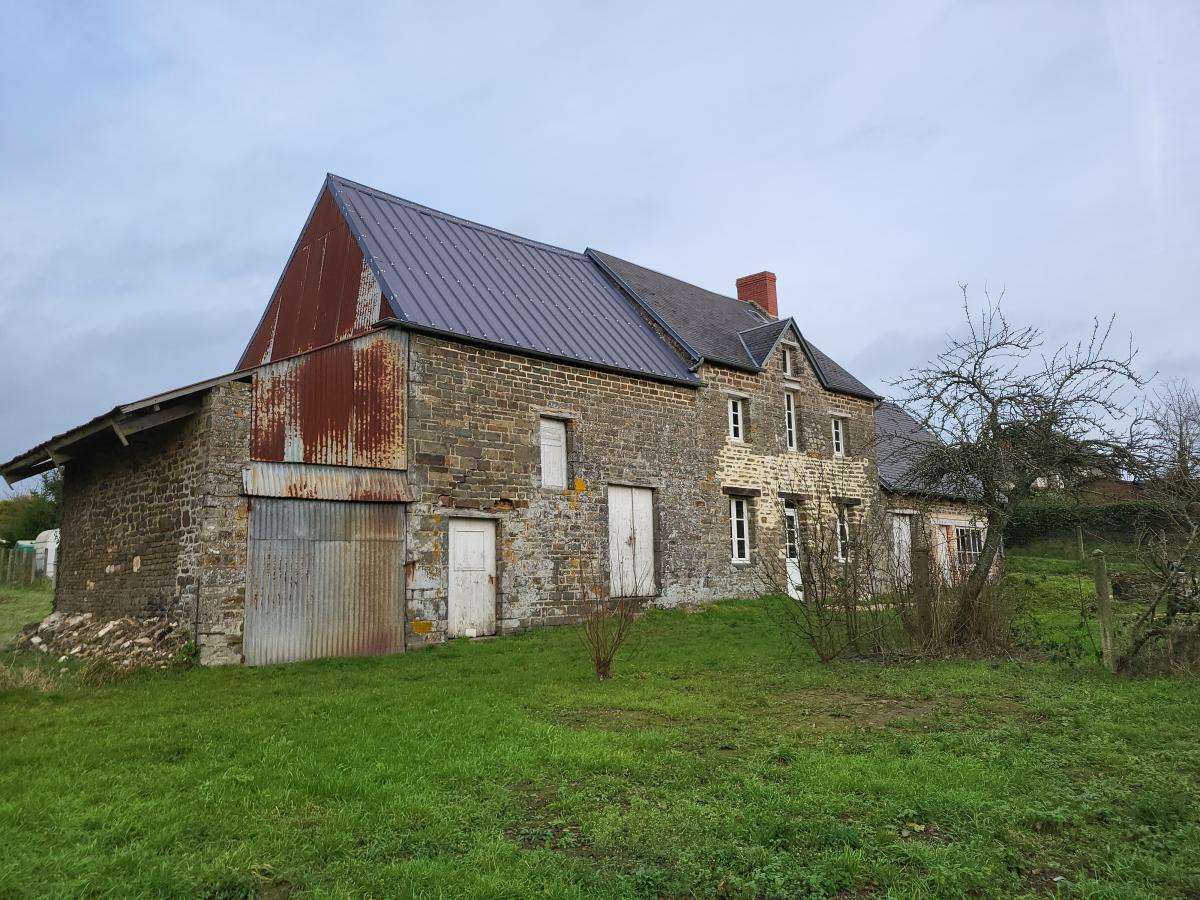 SAINT PIERRE TARENTAINE Proche Axe VIRE/VILLERS BOCAGE Maison en pierre à rénover d'une superficie d'environ 88 m² Gros oeuvre en bon état Compteur électricité dans la maison / Pas d'eau de la ville / Pas d'assainissement Ancienne étable et cave attenantes Terrain d'environ 2500 m²