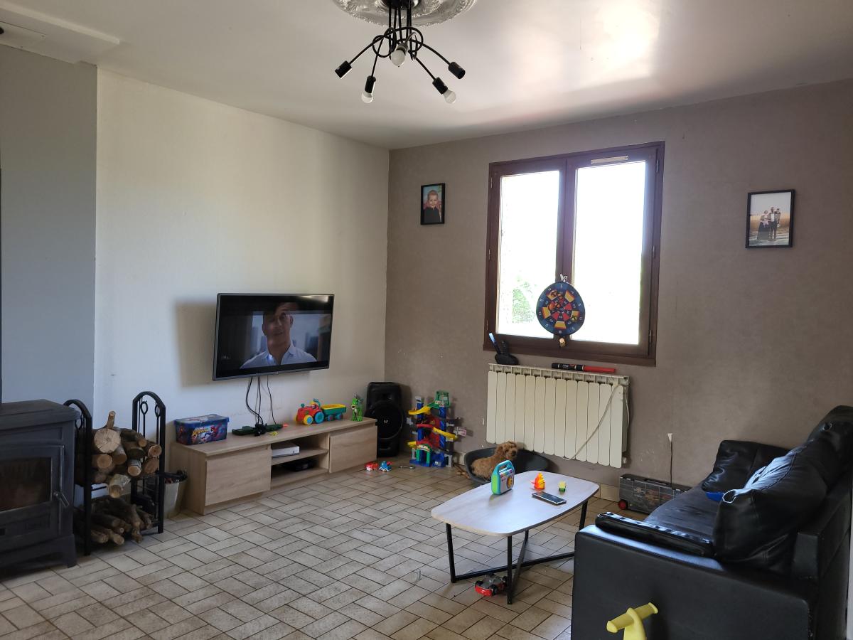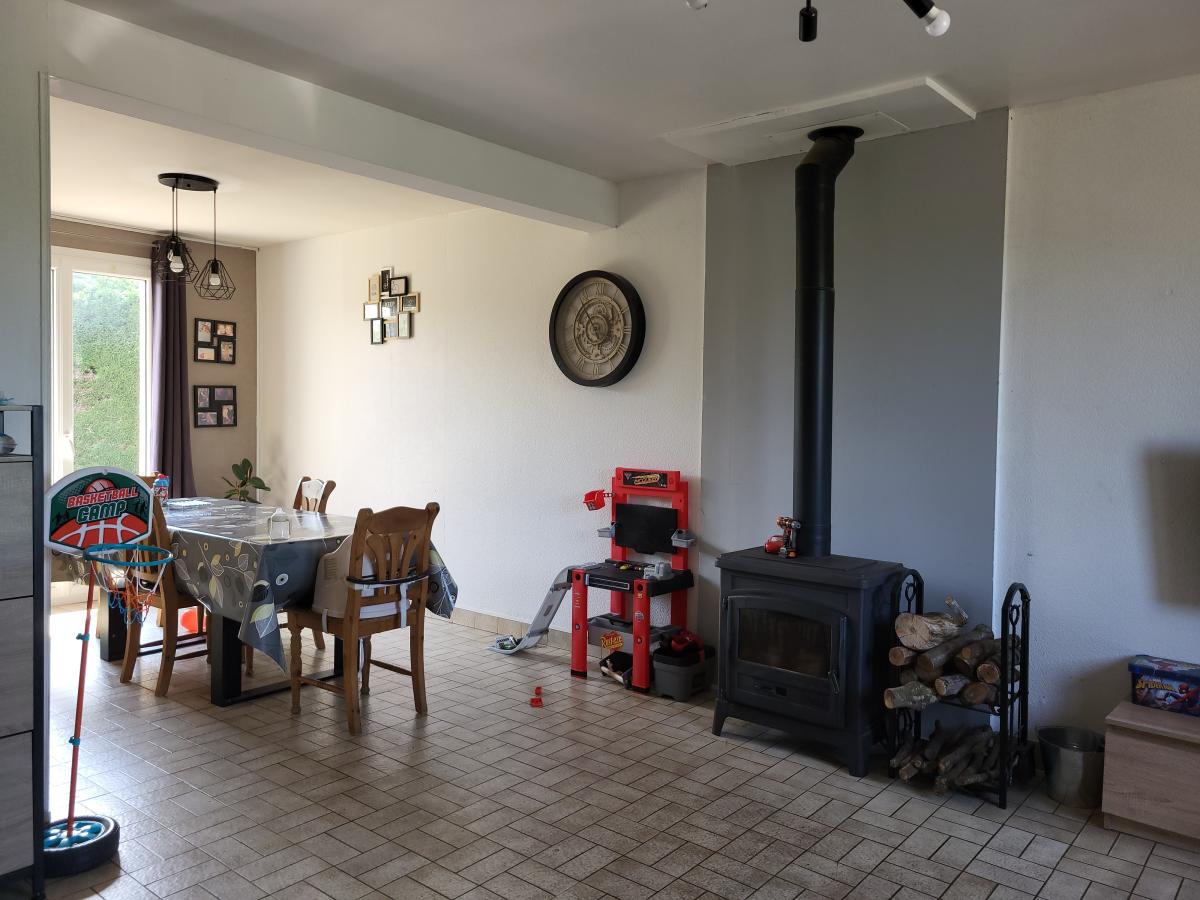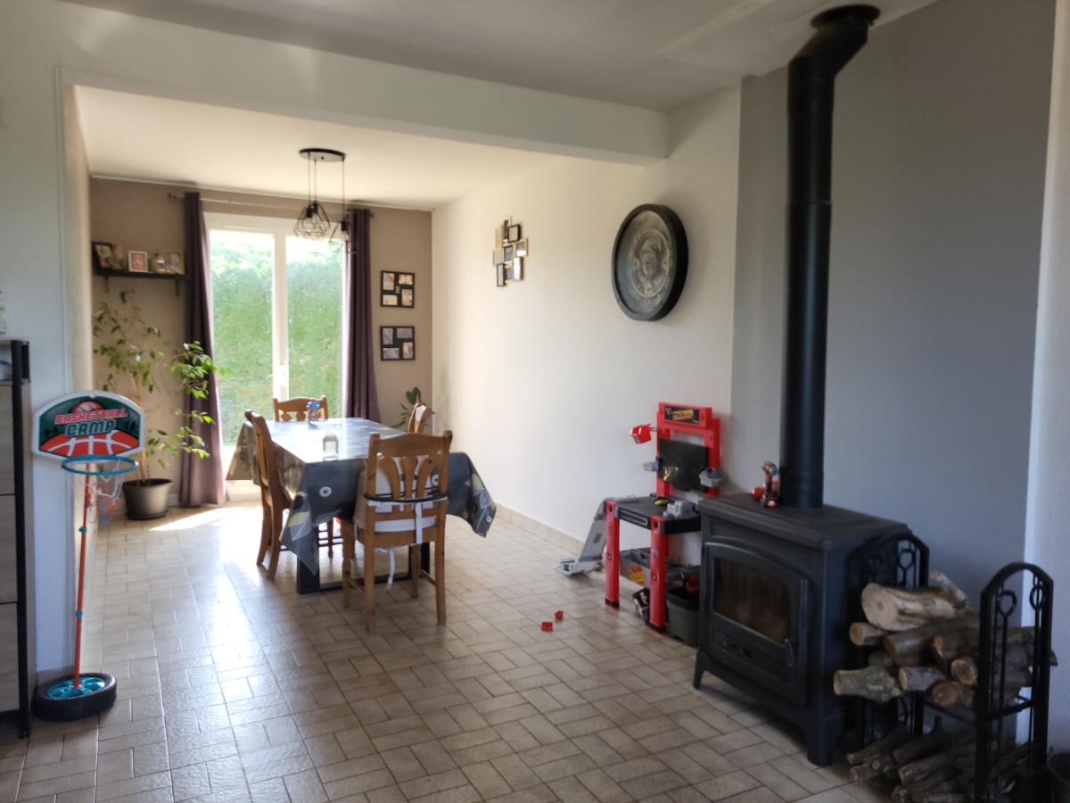 Rez-de-chaussée : séjour-salon avec poêle à bois, cuisine indépendante, 2 chambres, salle d'eau, wc