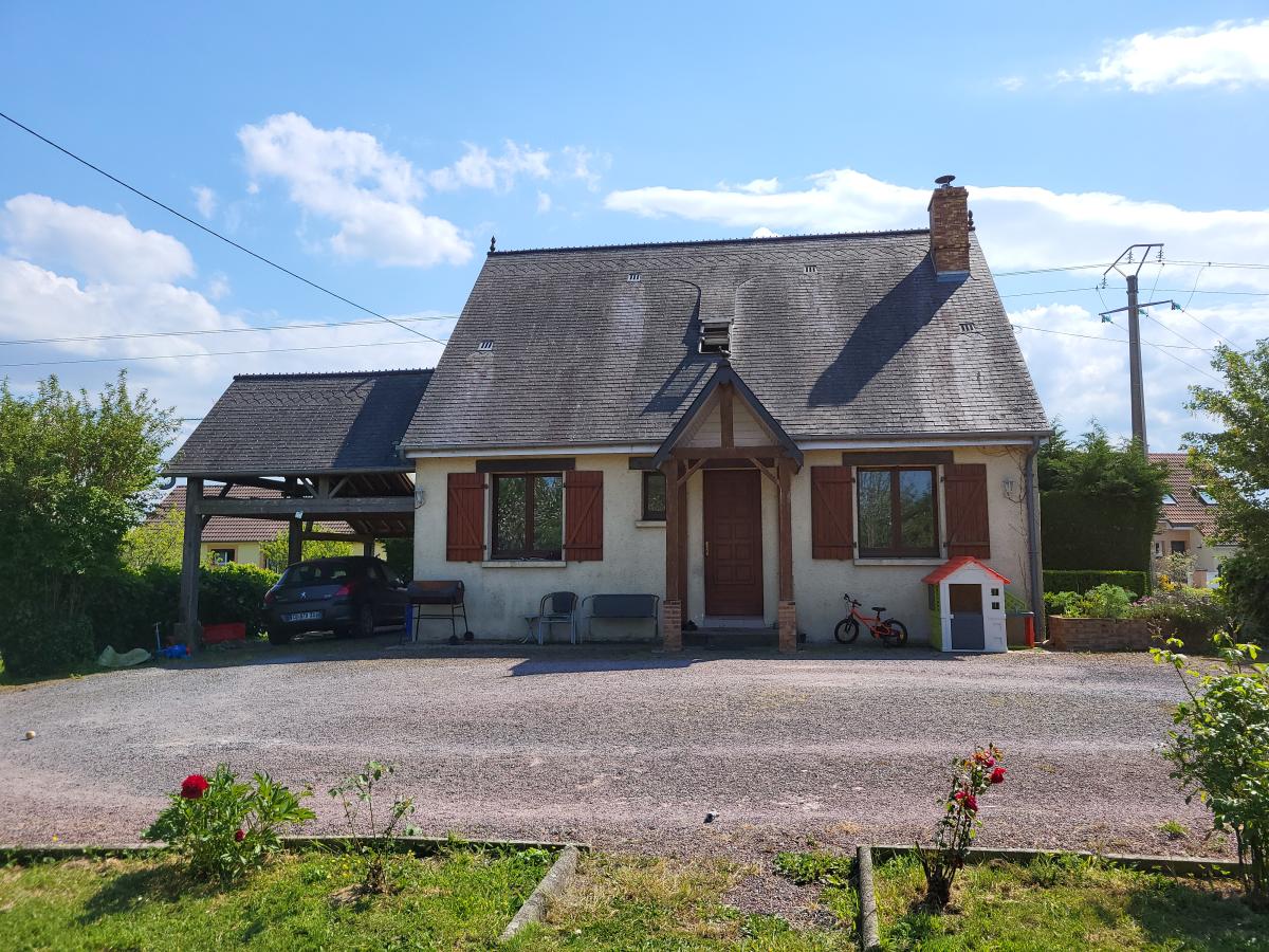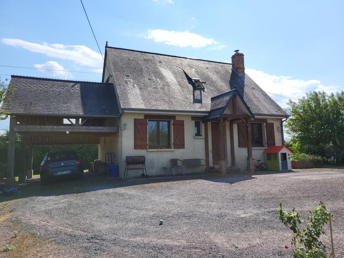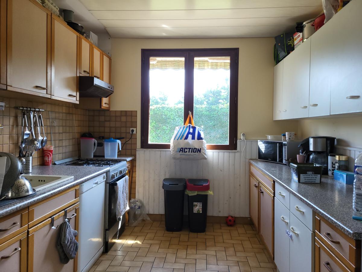Rez-de-chaussée : séjour-salon avec poêle à bois, cuisine indépendante, 2 chambres, salle d'eau, wc
