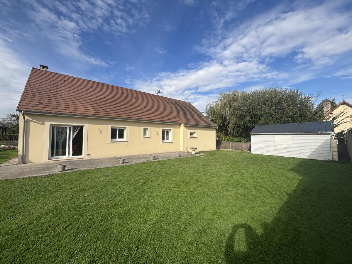 SECTEUR MOUEN / A PROXIMITÉ DES COMMERCES Maison d'habitation de plain-pied comprenant: Entrée, séjour/salon avec cheminée, cuisine indépendante A/E, cellier, dégagement, trois chambres, salle d'eau et wc Garage attenant et jardin