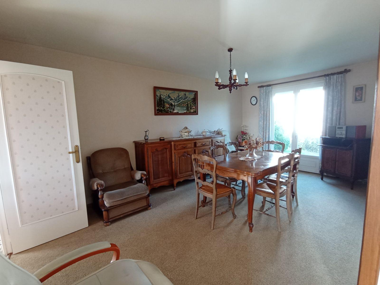 Pavillon individuel de plain-pied comprenant : Véranda, entrée, cuisine aménagée, salle à manger, salon, dégagement, trois chambres, salle d'eau, WC. Garage. Grenier au-dessus. Cave en sous-sol. Terrain autour de 562m².