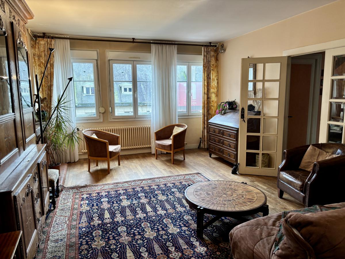Au cœur de Vire, à deux pas des commerces et d’une école, dans une petite copropriété de seulement deux propriétaires avec syndic bénévole et sans charges, cet appartement en triplex situé au deuxième étage offre un cadre de vie lumineux et fonctionnel. D’une surface habitable d’environ 112 m², il dispose également d’une spacieuse cave privative en sous-sol. Il est constitué comme suit : - Au deuxième étage : une entrée avec espace de rangement distribue un séjour/salon chaleureux, agrémenté d’une cheminée et d’un parquet massif, ainsi qu’une cuisine aménagée et équipée. Une salle de bains, un espace de rangement supplémentaire et un WC complètent ce niveau. - Au troisième étage : trois chambres, dont l’une avec salle d’eau privative, et un dressing forment un espace nuit confortable et bien organisé. - À l’étage supérieur : une chambre supplémentaire accompagnée d’un bureau ouvert constitue un espace idéal pour le télétravail ou une activité indépendante. Prestations : Huisseries en PVC avec double vitrage, volets PVC, chauffage au gaz de ville avec chaudière à condensation récente, radiateurs en fonte.