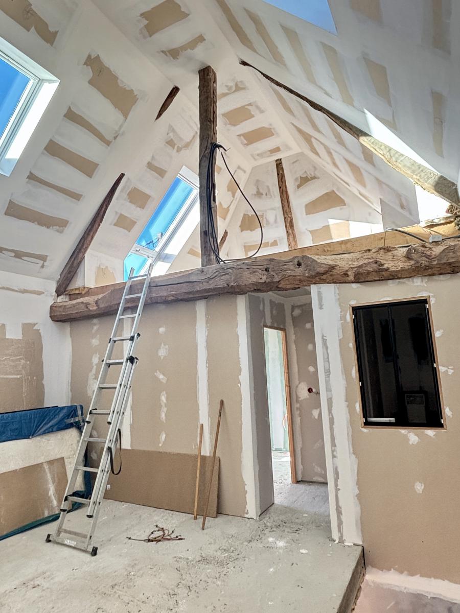 - Au deuxième étage : une pièce en cours d’aménagement, idéale pour un espace nuit complémentaire, un bureau ou une salle de jeux.