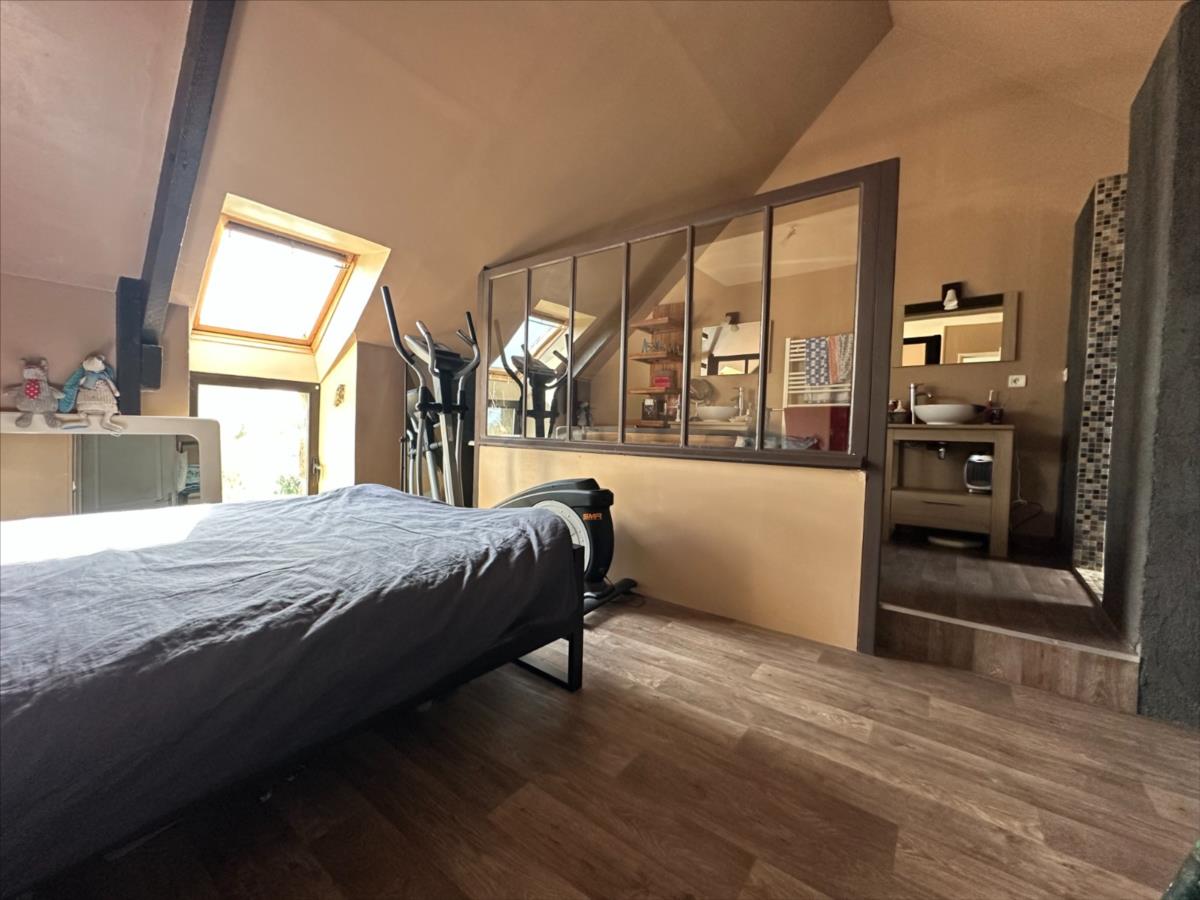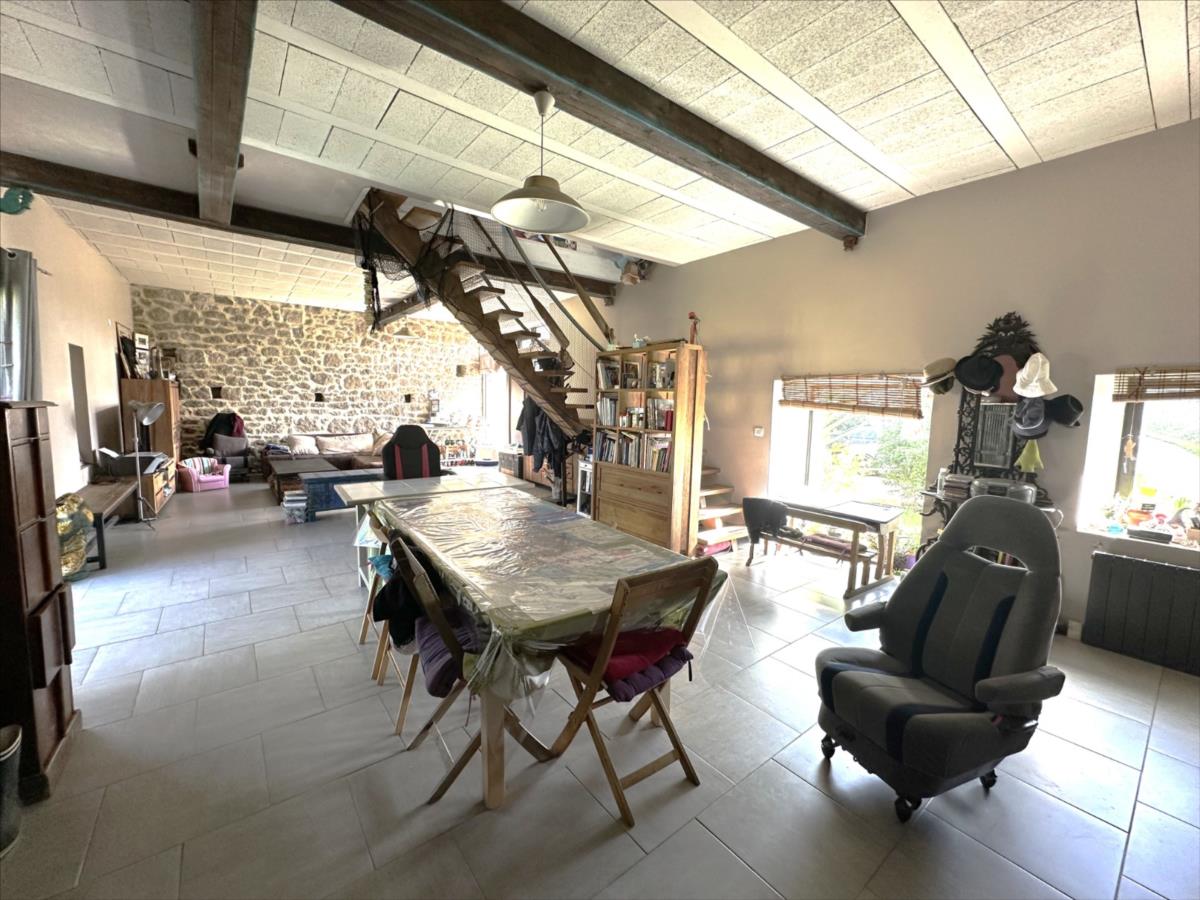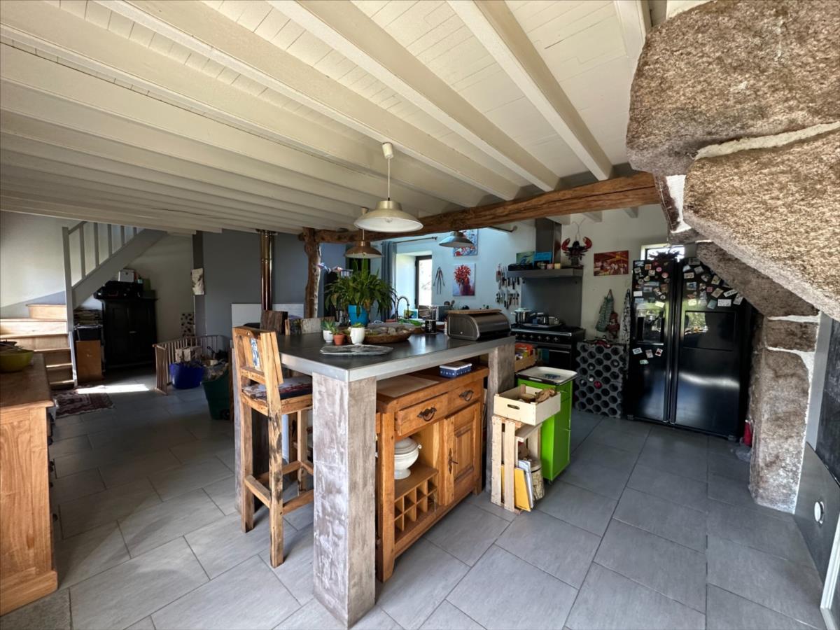 A 4 kms de la mer, dans un environnement campagne, au calme, propriété comprenant :* Une maison d'habitation composée - au rez-de-chaussée : grande cuisine équipée, arrière-cuisine, dégagement dans lequel WC, penderie, grand séjour - salon avec cheminée en pierre de Valognes.- au dessus : d'un côté : mezzanine, de l'autre palier desservant salle d'eau, deux chambres mansardées et une chambre parentale avec salle de bains privative.* Diverses dépendances attenantes : a gauche de la maison : cellier en pierre. A droite : grand hangar construit en tôle avec bardage en bois sur la façade.Jardin autour de la propriété sur lequel plan d'eau, ancienne boulangerie et dépendance construite en agglo et serre.Le tout pour une surface cadastrale de 1.936m²