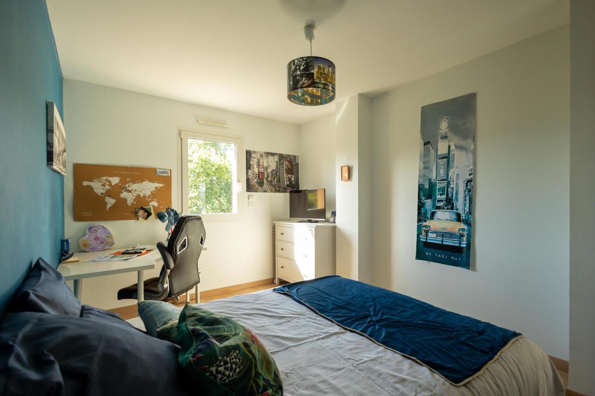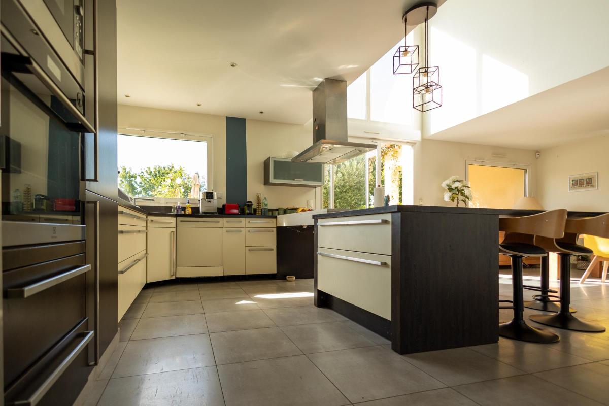 Rez-de-chaussée : une entrée, une grande pièce de vie traversante comprenant une cuisine ouverte, une salle à manger, un salon, un bureau ; une chambre avec salle d'eau privative, WC, une arrière cuisine - buanderie,