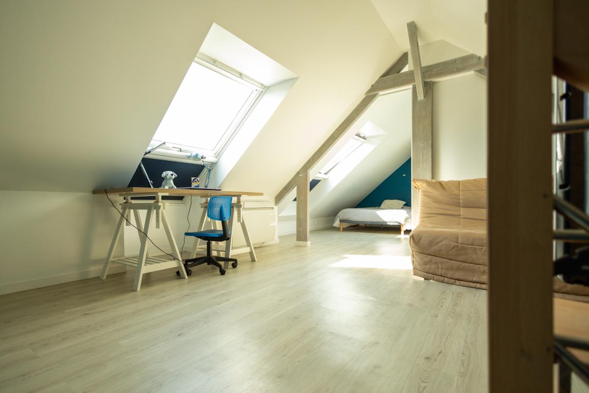 Deuxième étage : une grande chambre avec salle d'eau privative.
