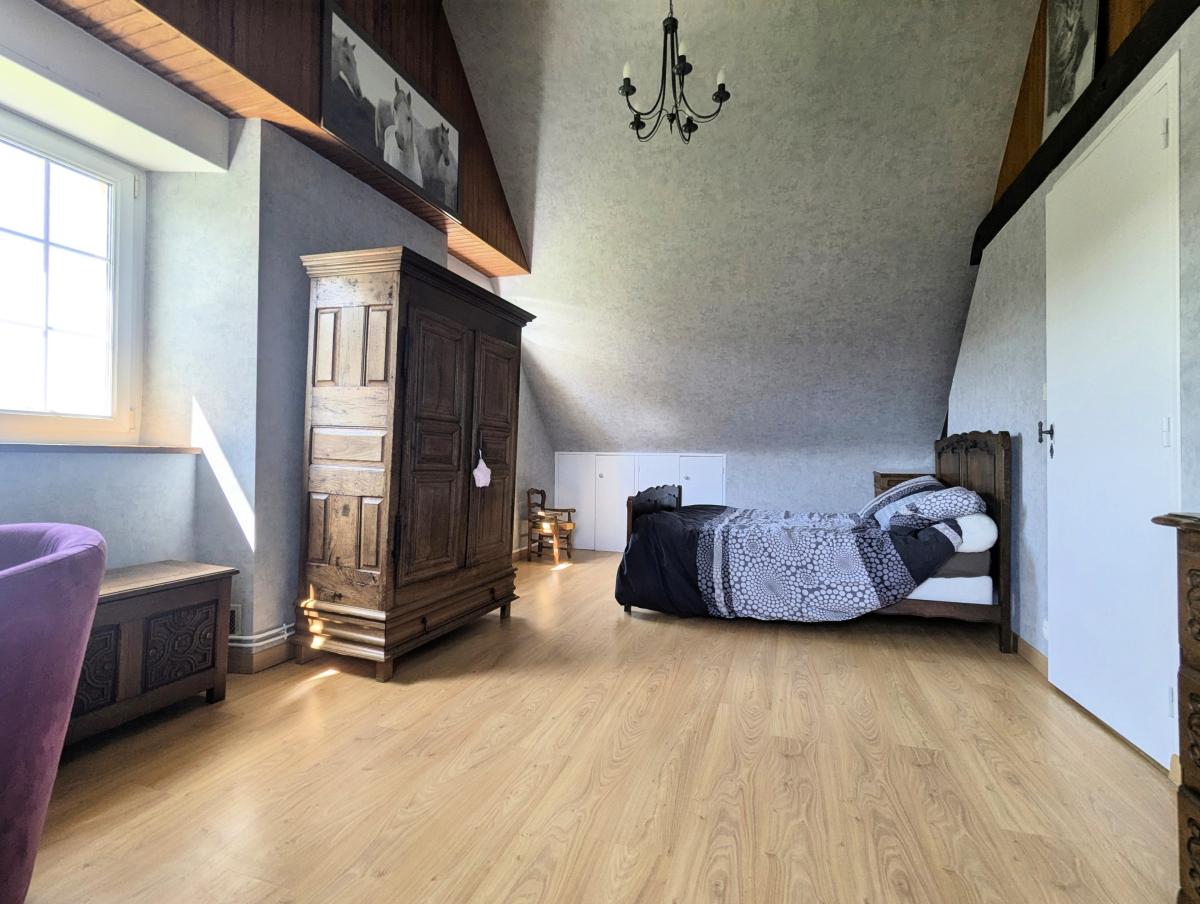 - À l’étage sous combles, une mezzanine dessert deux chambres, une petite pièce avec douche, ainsi qu’un WC.
