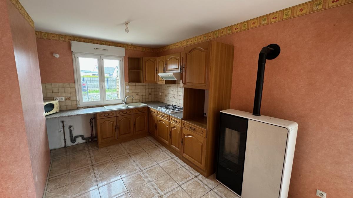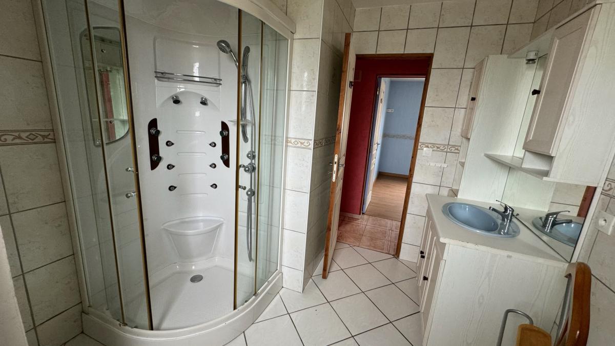 - au rez-de-chaussée : entrée de 4.3m² avec placard, dégagement, cuisine de 13.2m² aménagée et équipée ouverte sur séjour/salon de 22.4² avec cheminée insert et poêle à granulé, WC avec lave-mains, bureau de 6m², chambre de 11m², salle de douche de 7m² avec meuble vasque.