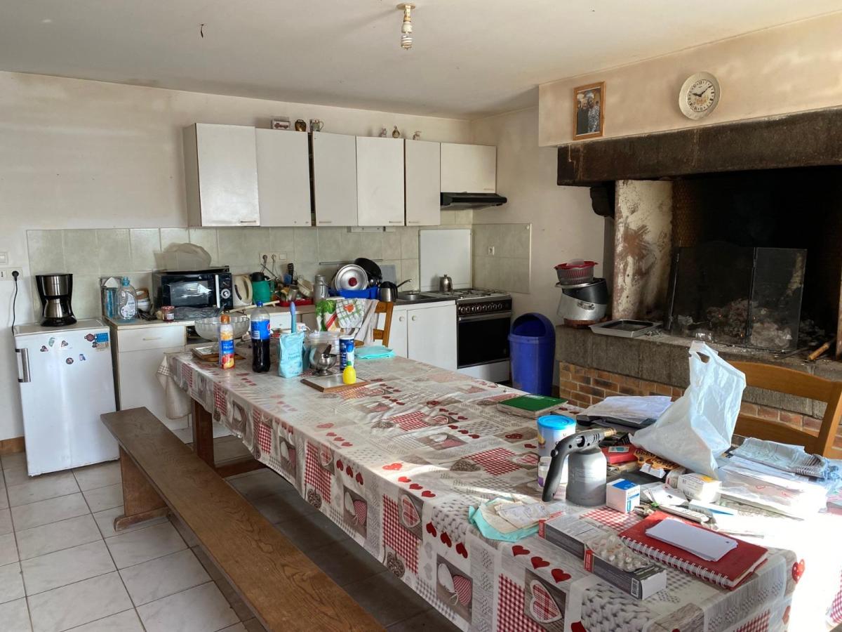 Dans hameau, Maison en pierres mitoyenne d'un côté, comprenant : - Rez-de-chaussée : entrée sur cuisine avec cheminée, séjour salon avec cheminée, une chambre, dégagement, cellier/buanderie, salle d'eau, WC ; - Etage : palier desservant deux grandes chambres. Grenier. Terrasse et cour sur laquelle dépendance à usage de garage et atelier. Parcelle à délimiter par géomètre. Possibilité d'acquérir une ancienne stabulation d'environ 1800 m² avec 4 voir 5 hectares de terres libres. Les informations sur les risques auxquels ce bien est exposé sont disponibles sur le site Géorisques : www. georisques. gouv. fr