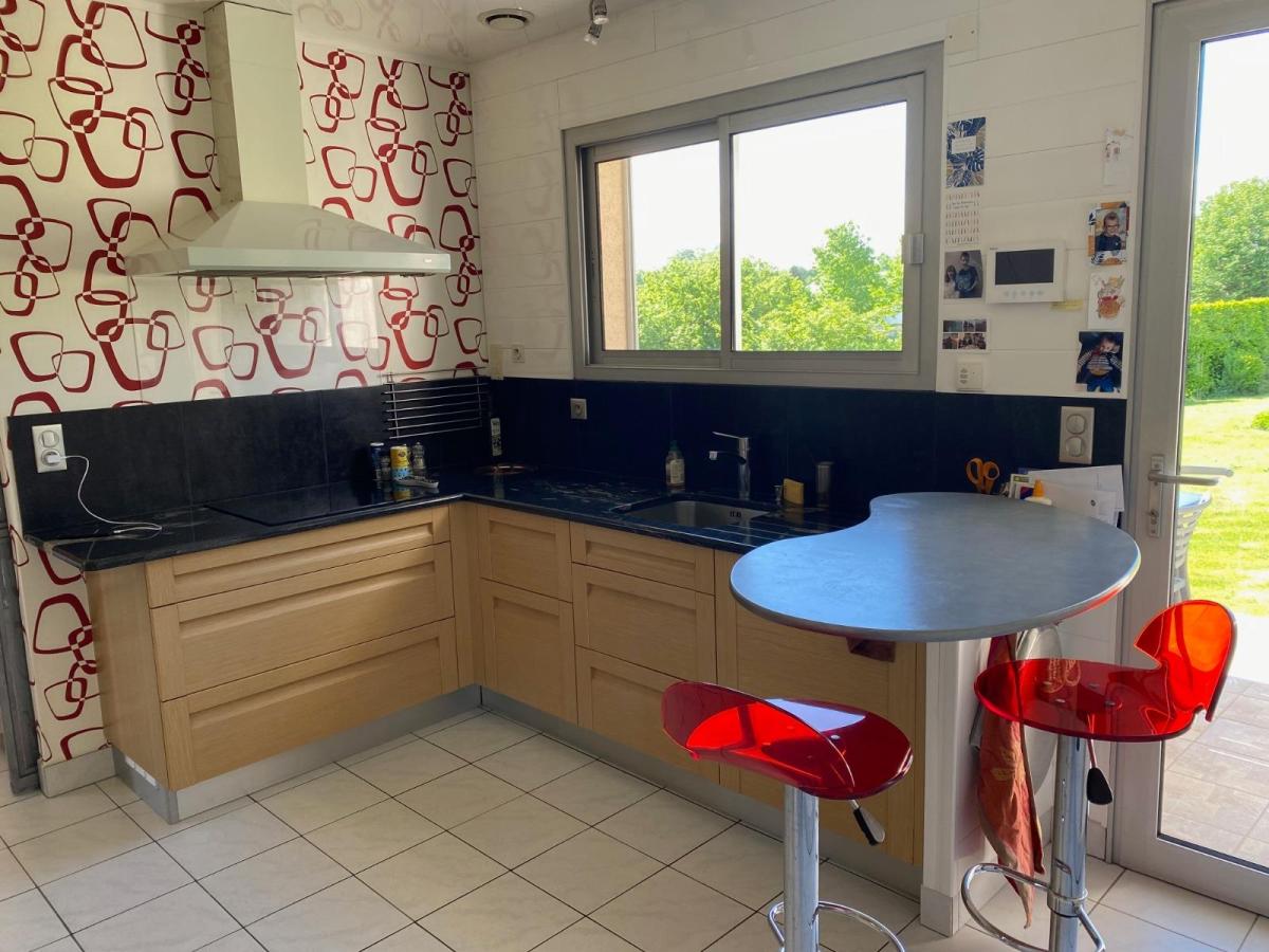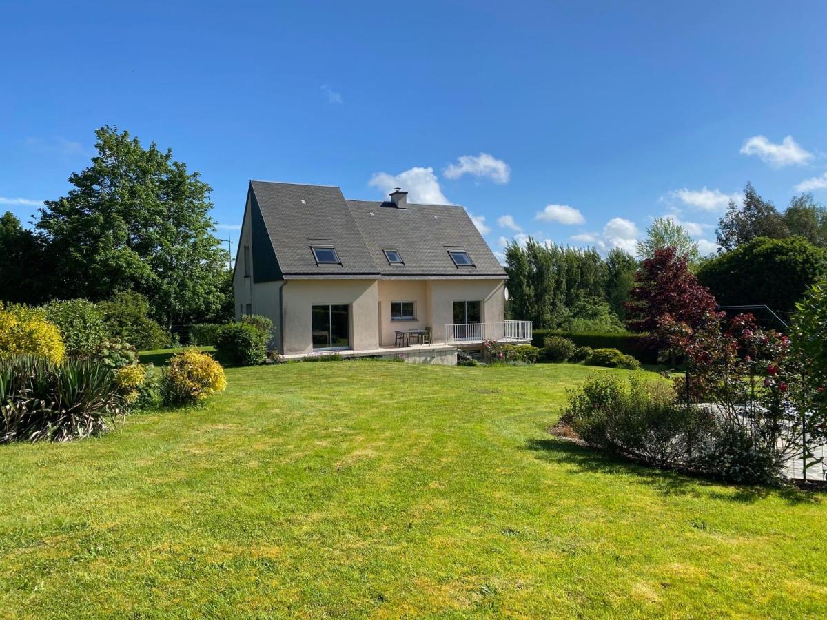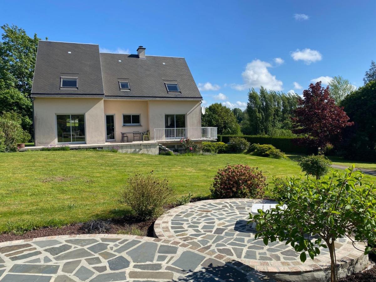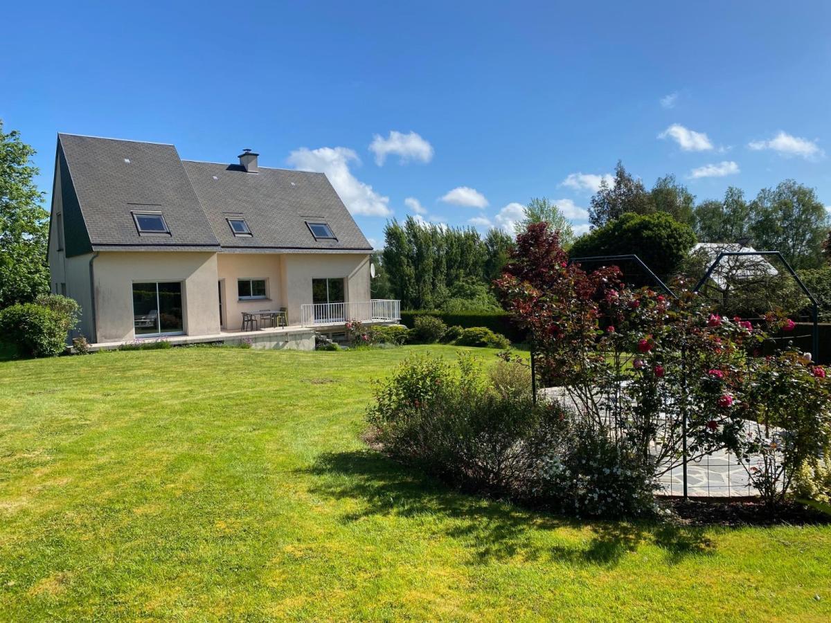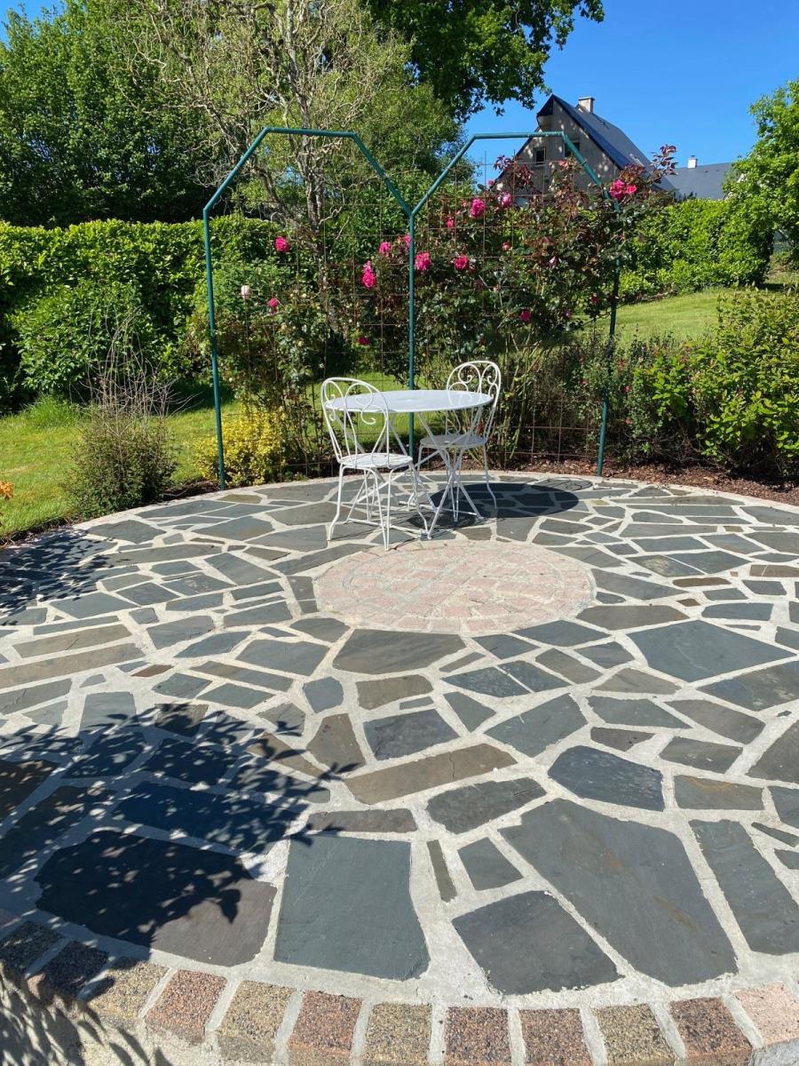 Proche échangeur de l'A84 et A 800 m à pied sur trottoir du centre-ville de VILLEDIEU, piste cyclable au pied de la maison,