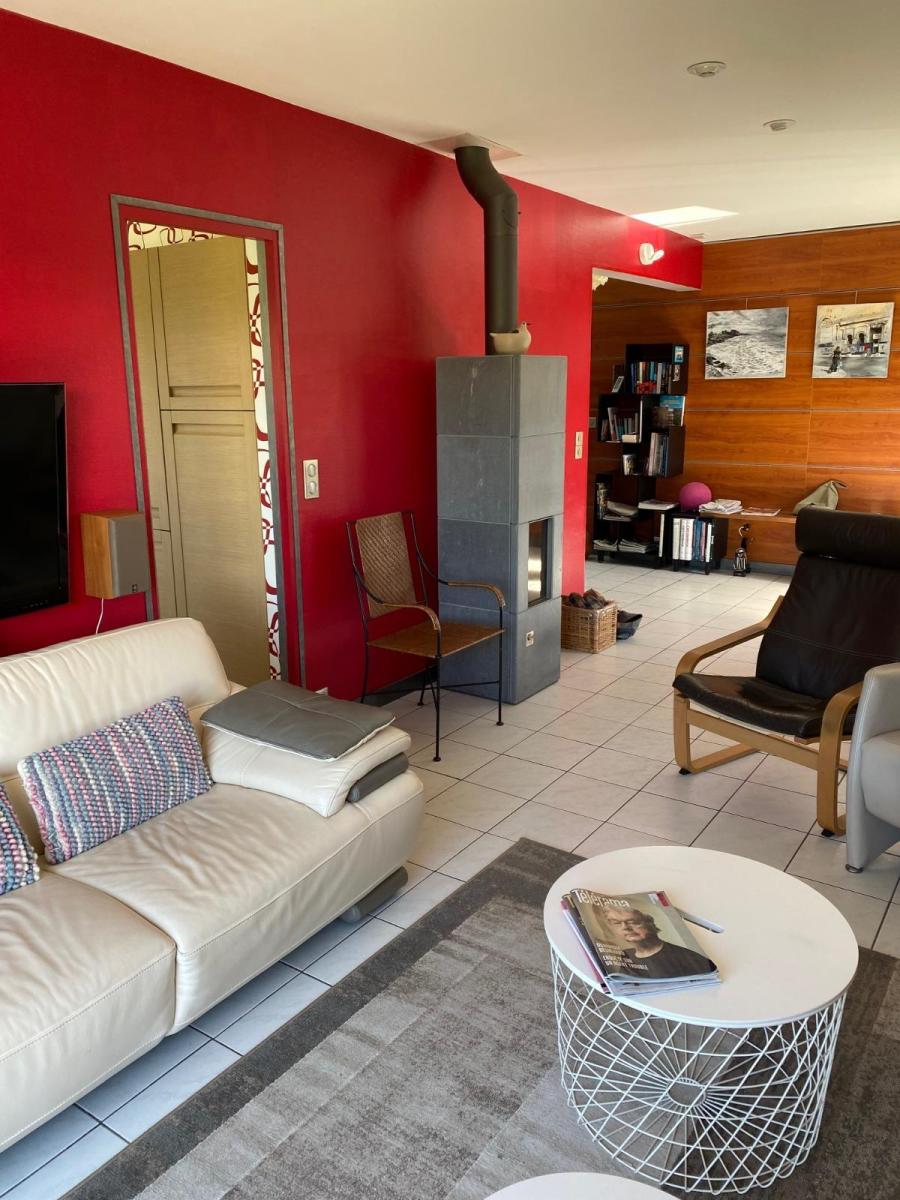 - Rez-de-chaussée : entrée, séjour salon avec poêle à bois, cuisine aménagée et équipée, salle à manger, dégagement, une chambre, salle d'eau/WC ;