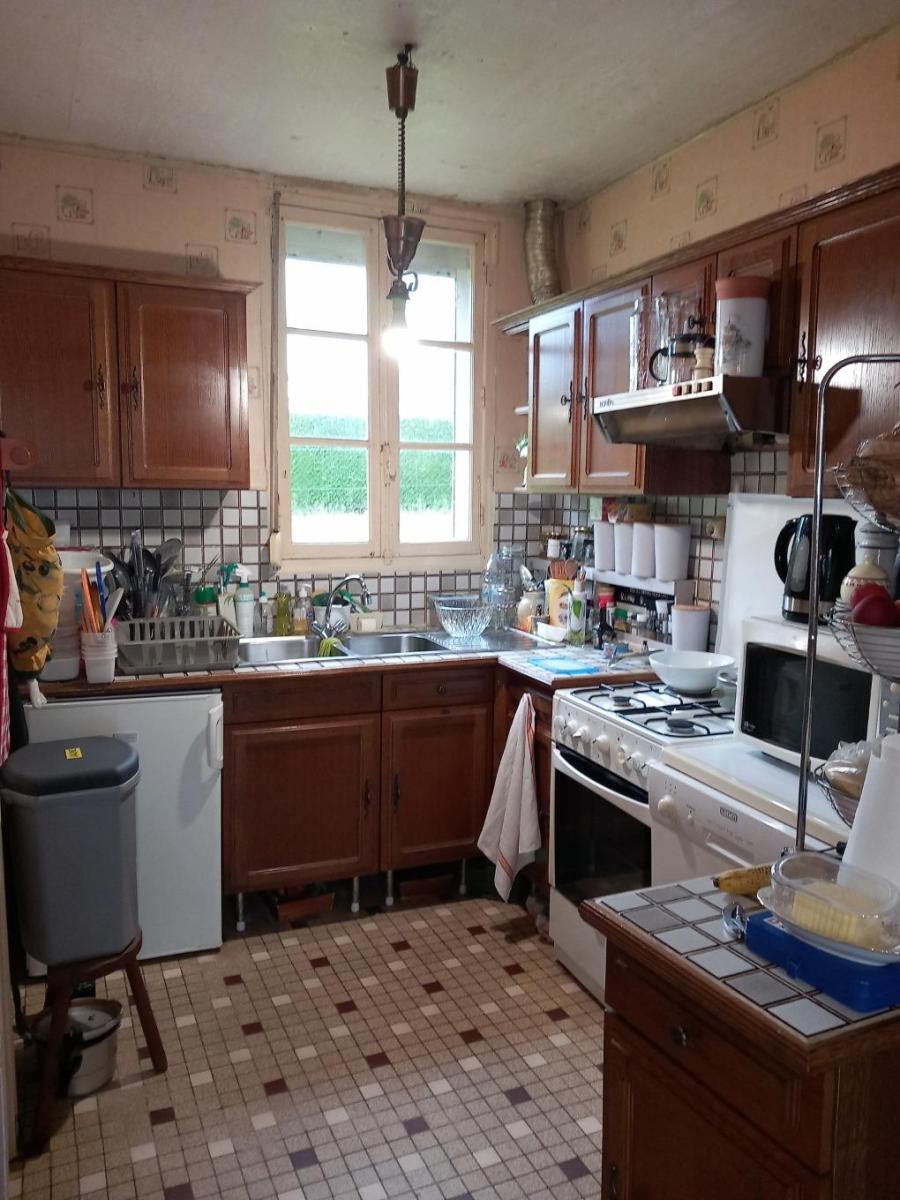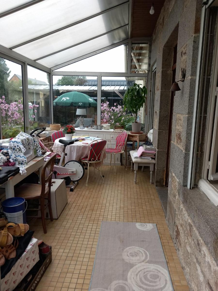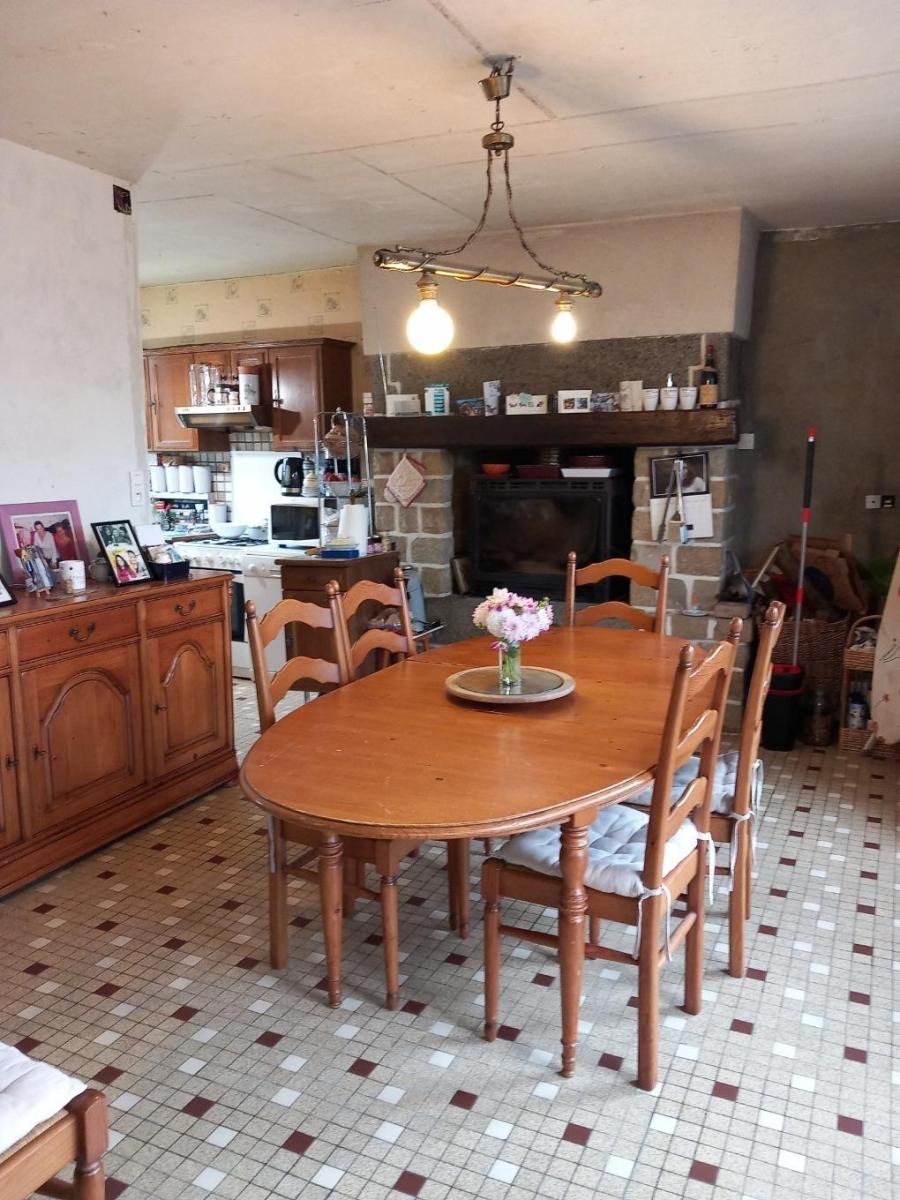 A proximité du bourg, Maison comprenant : - Rez-de-chaussée : entrée sur véranda, séjour avec insert, salon, cuisine aménagée, une chambre, salle d'eau, WC ; - Etage : une chambre, salle de bains/WC, grenier. A la suite : chaufferie/buanderie. De l'autre côté : atelier, caves. Hangar. Cour et jardin clos de 1644 m². Les informations sur les risques auxquels ce bien est exposé sont disponibles sur le site Géorisques : www. georisques. gouv. fr