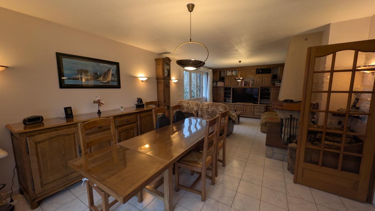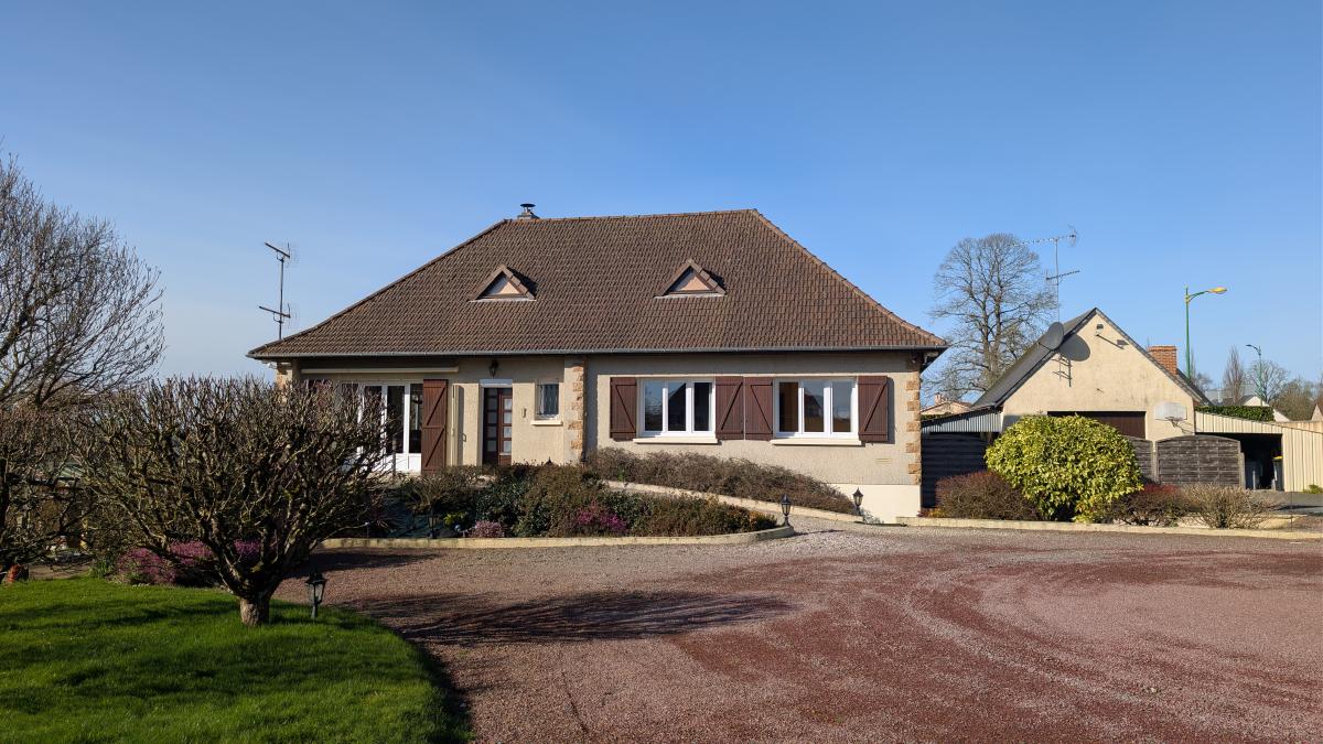 Maison construite en 1976 comprenant : au sous-sol : garage, atelier, cave, pièce et cellier. au rez-de-chaussée : entrée avec placards, séjour avec insert, cuisine aménagée/équipée, couloir desservant 4 chambres, salle d'eau, wc. au 2ème étage : grenier. Garage indépendant, appentis, abris jardin. Cour gravillonnée et jardin clos.
